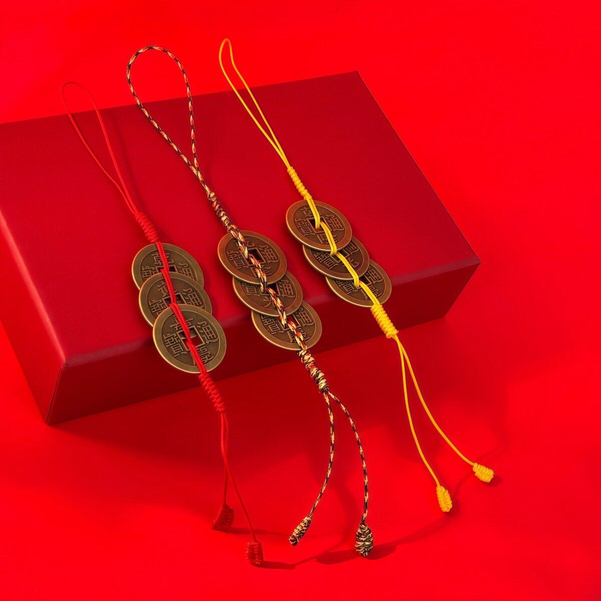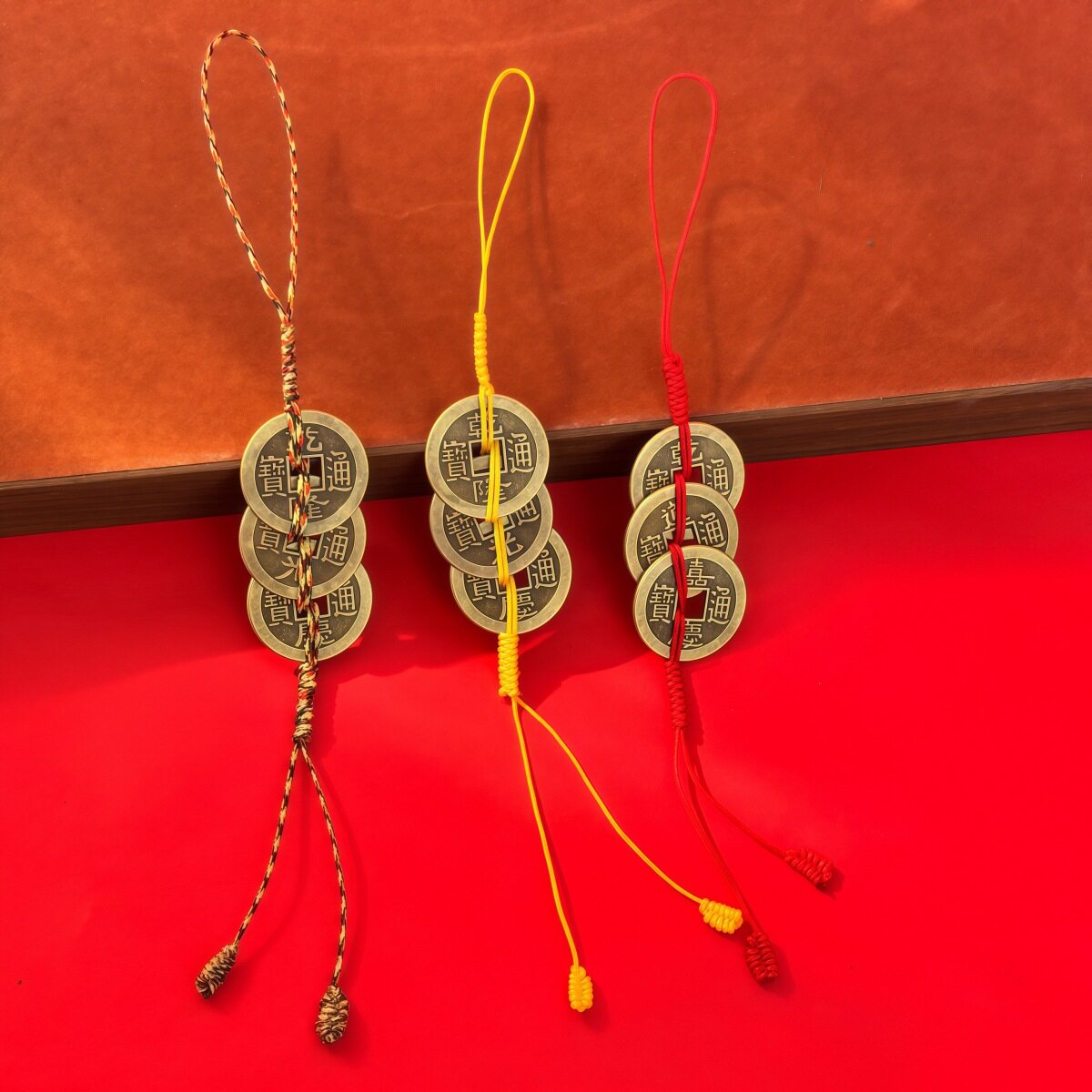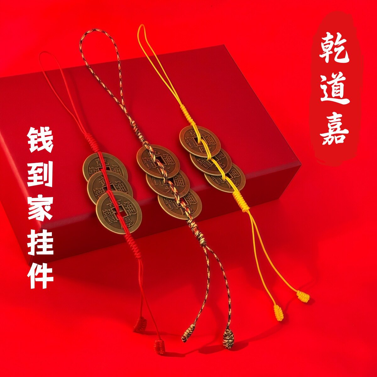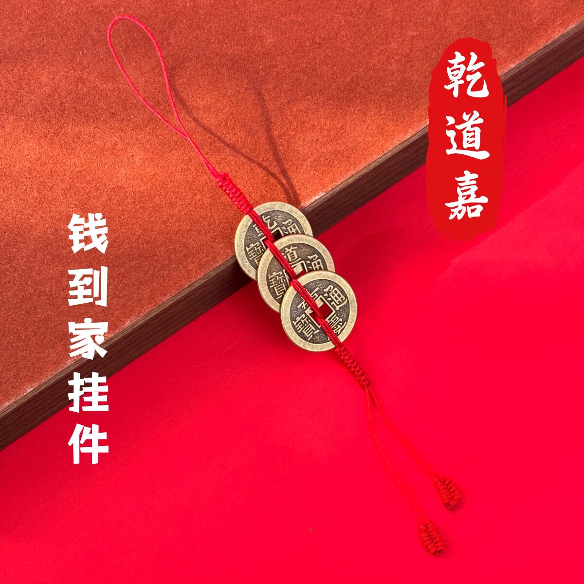 📚 钱到家乾道嘉三帝钱挂件钥匙扣车挂乾隆道光嘉庆黄铜钱吊坠编织绳