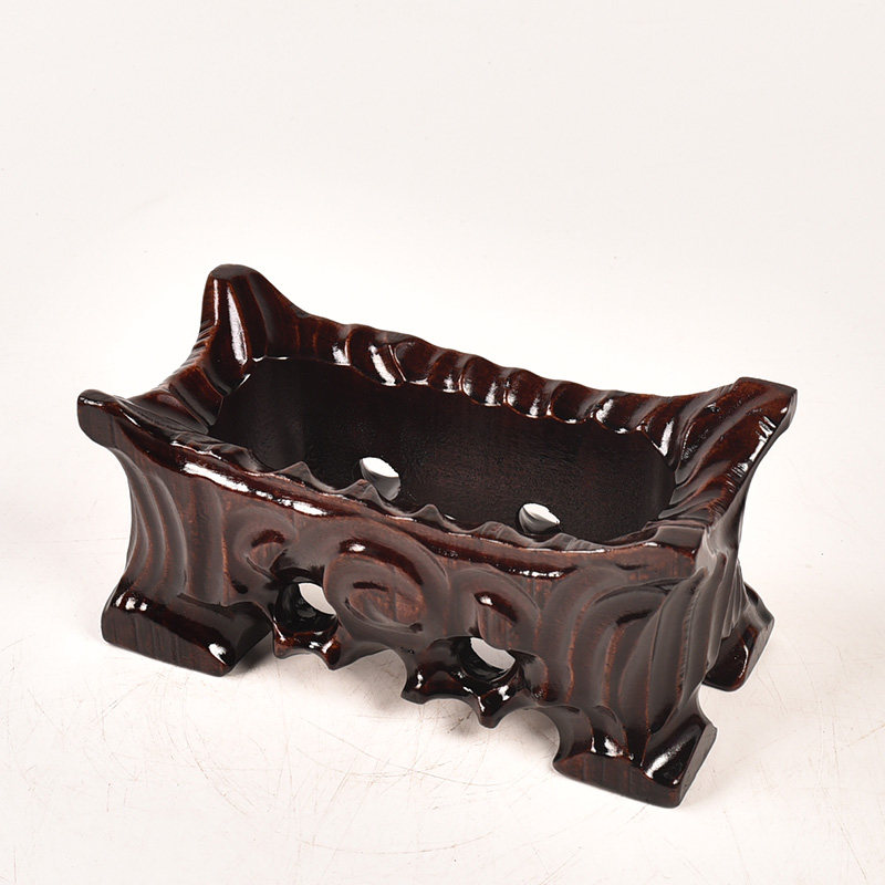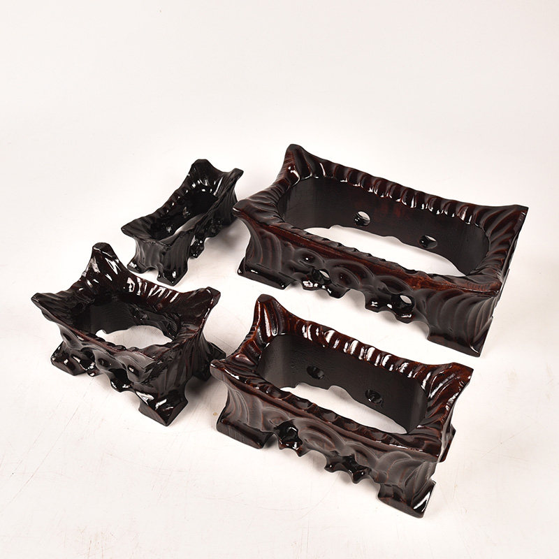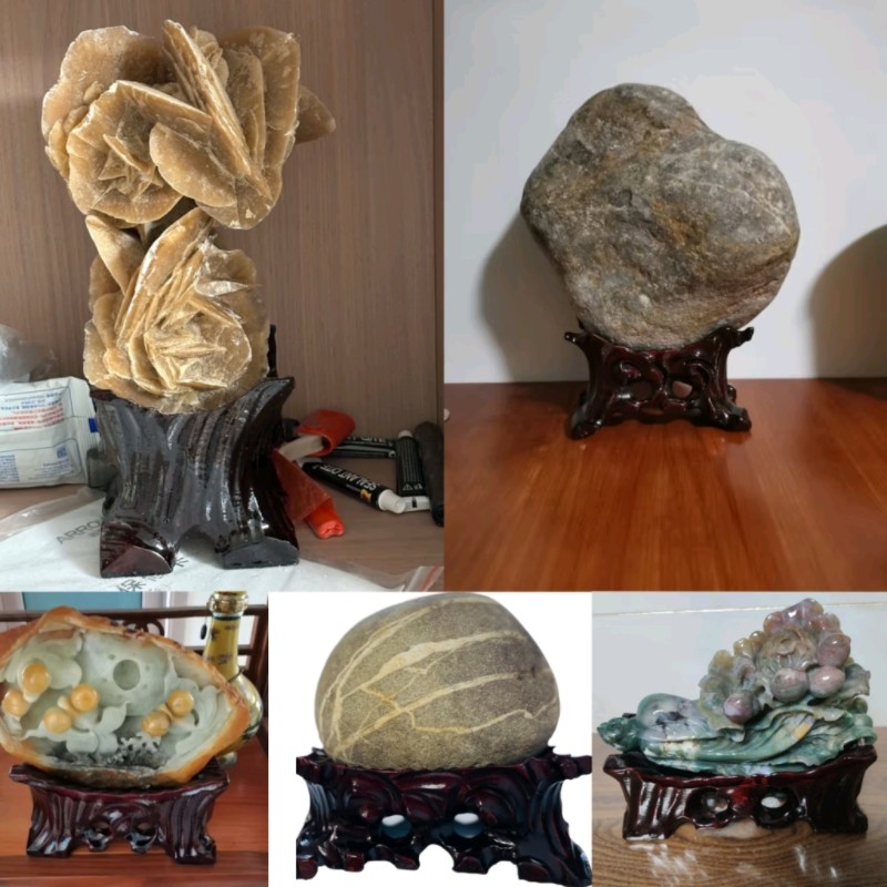 📚 免挖槽奇石底座实木带凹槽鹅卵石黄河石泰山石头摆件万能托架底托