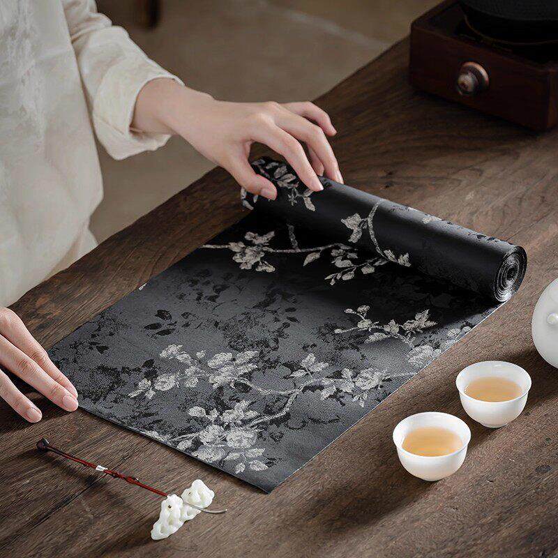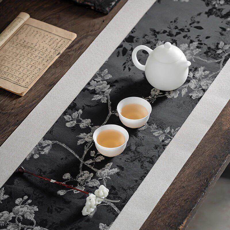 📚 黑色长茶席禅意轻奢高端侘寂风干泡台桌布垫布新中式美学茶旗垫子