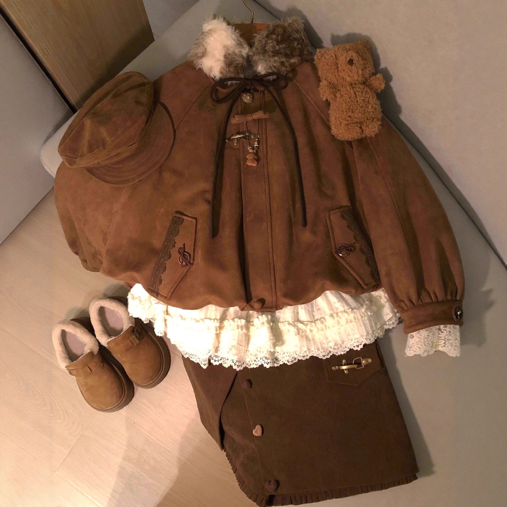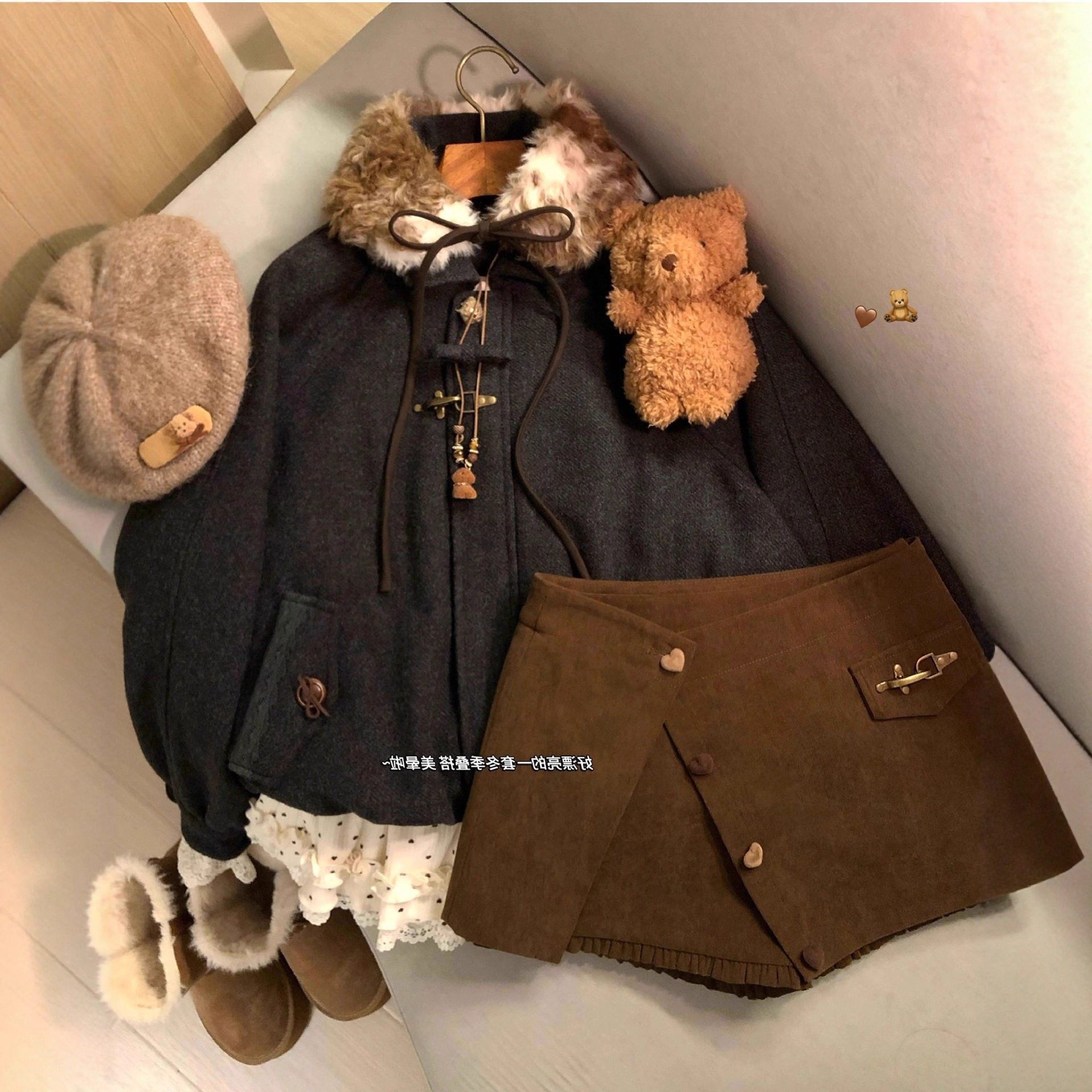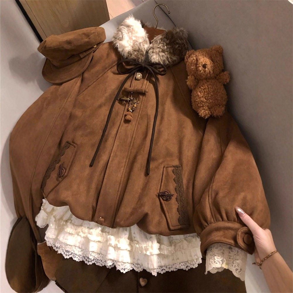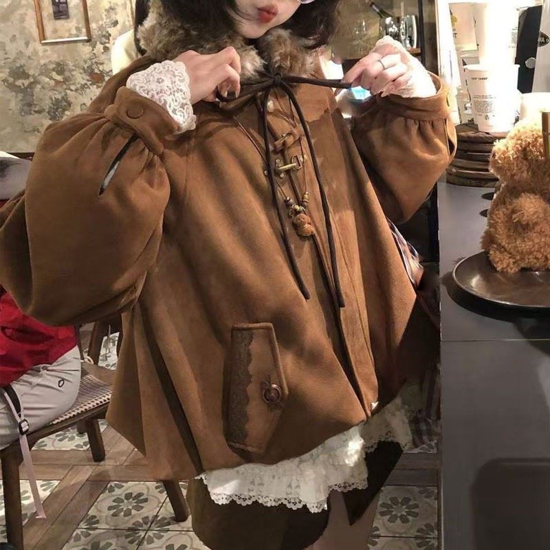 📚 乱糟糟“日杂感叠穿”毛毛领vintage感夹棉花苞外套上衣秋冬女装