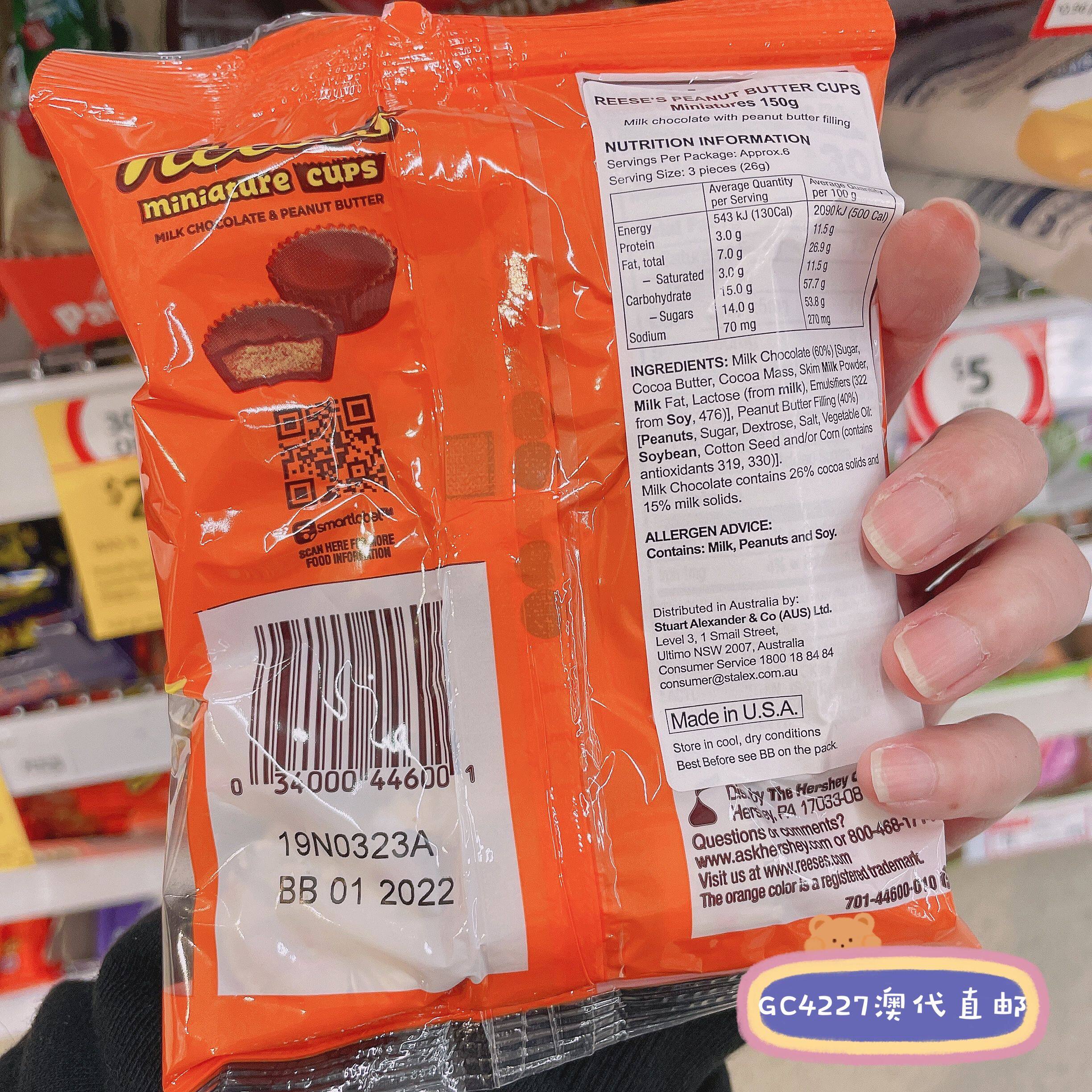 📚 澳洲直邮美国好时HERSHEYS Reese花生酱牛奶夹心巧克力散装 150g