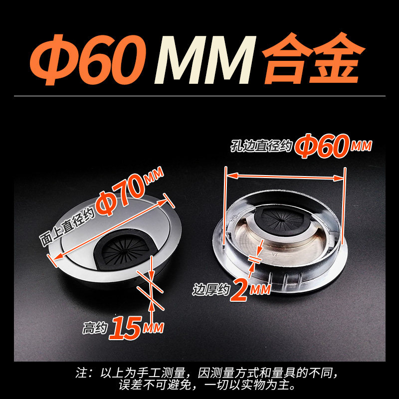 📚 电脑办公桌穿线圆孔盖金属开孔盖台式桌电线孔盖洞装饰盖孔塞60mm
