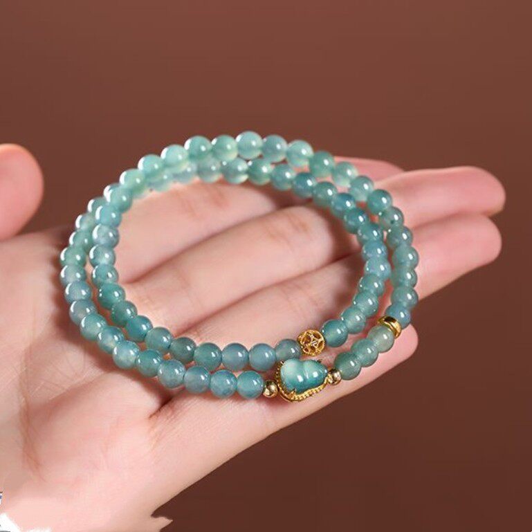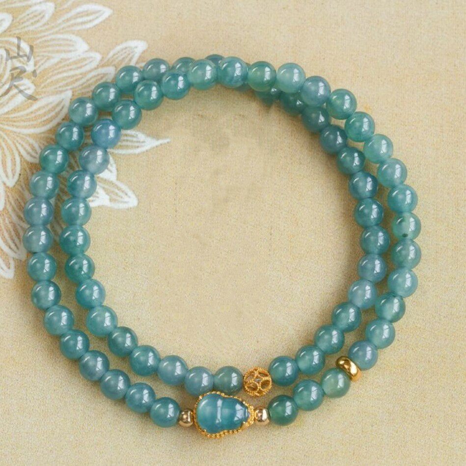 📚 翡翠手链女款冰种玉天然蓝水葫芦手串双圈多圈轻奢高级感串珠手串