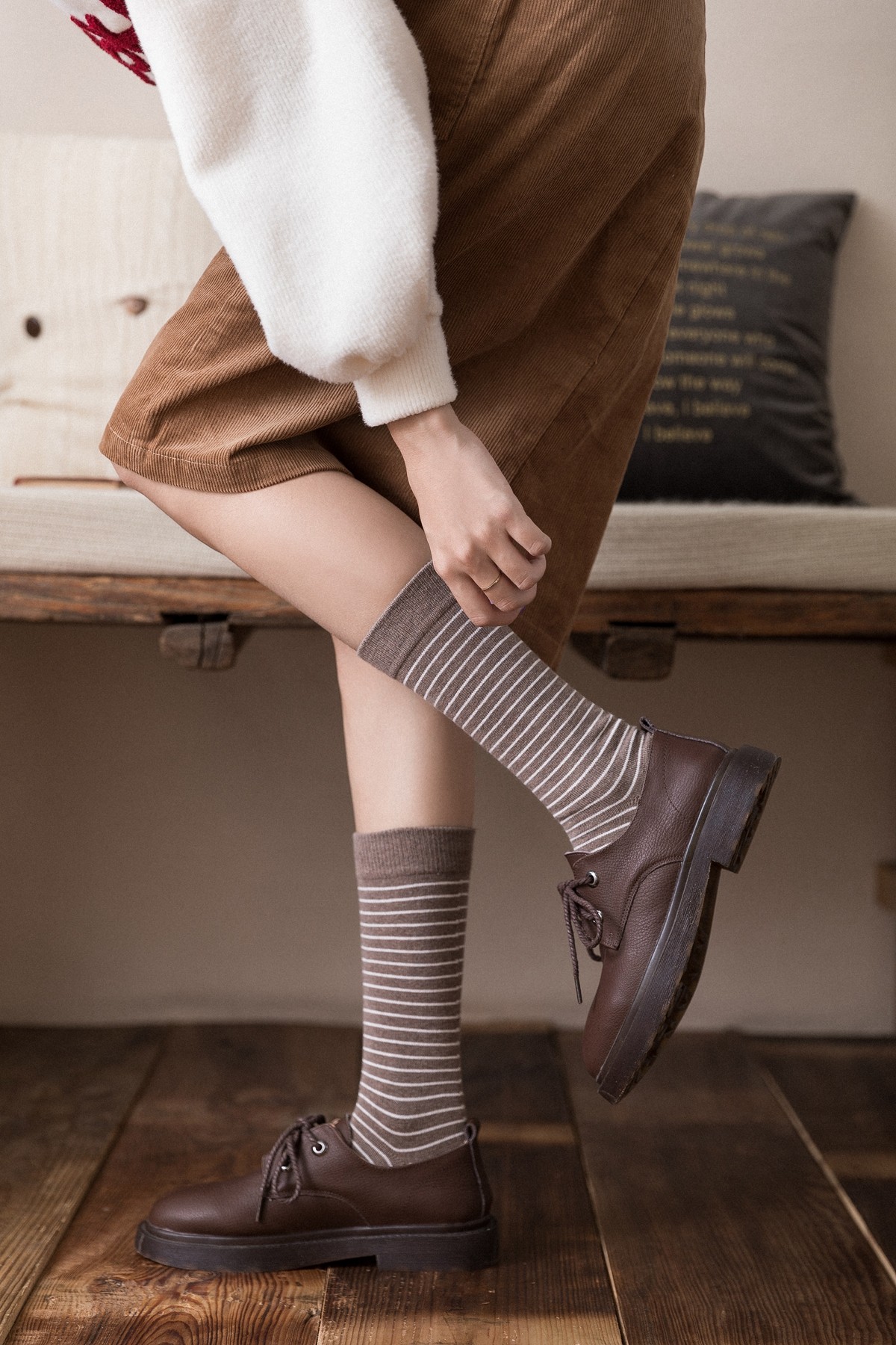 📚 妹子苾入!日系ins风!新款长筒无骨袜小清新条纹堆堆袜月子棉袜