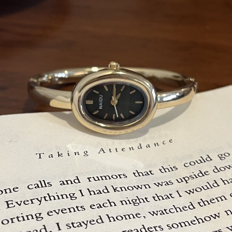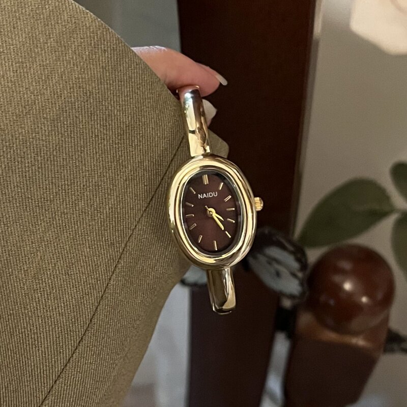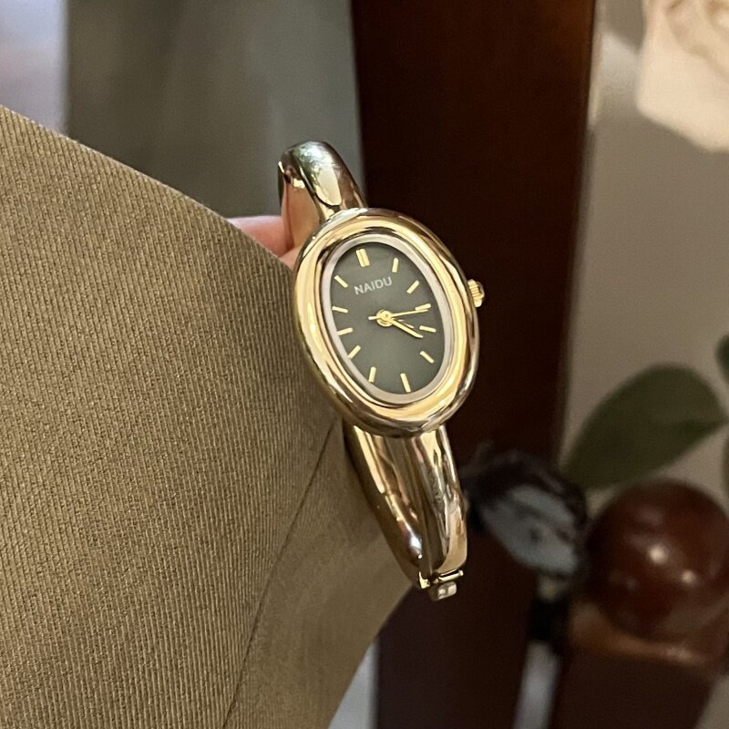 📚 椭圆迷你浴缸金色手镯式手表女士上班族小众复古轻奢高级感石英表
