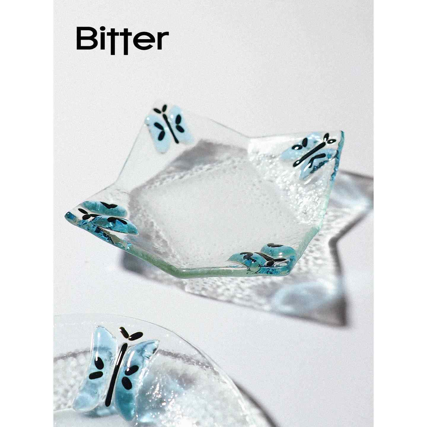 📚 Bitter手工蝴蝶调料碟家用酱油蘸料碟覆古玻璃首饰托 托盘小号碟