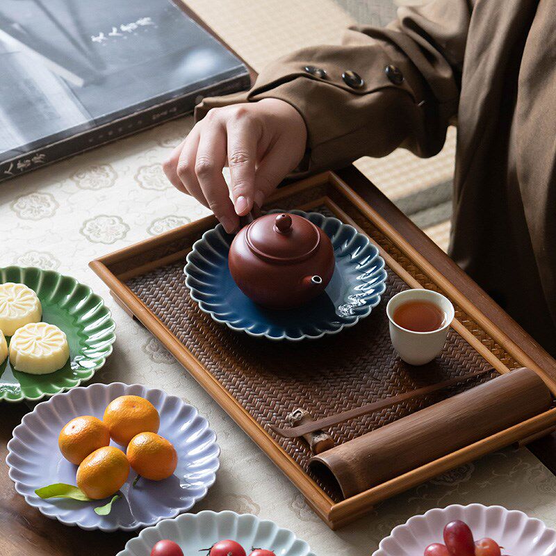 📚 中式圆形创意点心盘围炉茶点盘家用简约茶食碟精致蛋糕碟子摆盘