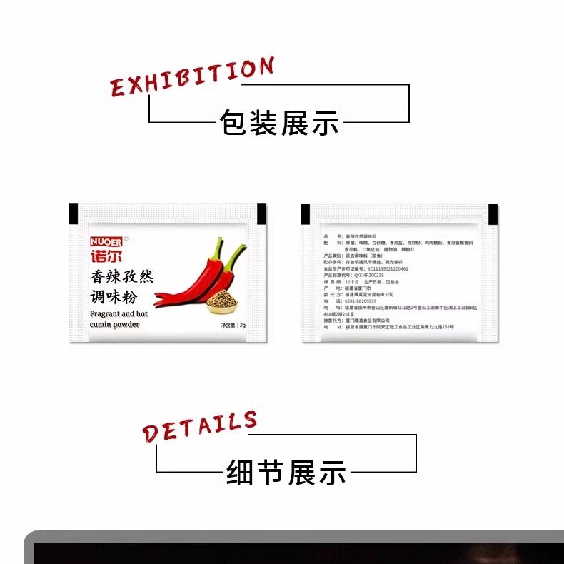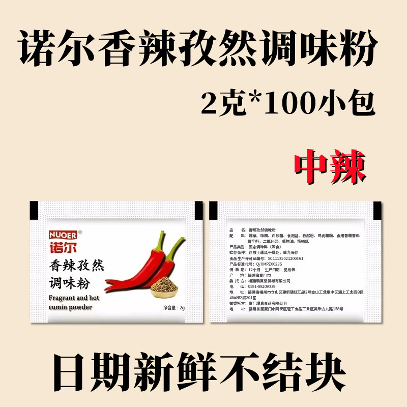 📚 诺尔中辣孜然香辣调味粉2克100包 香辣孜然粉 小包撒粉辣椒面