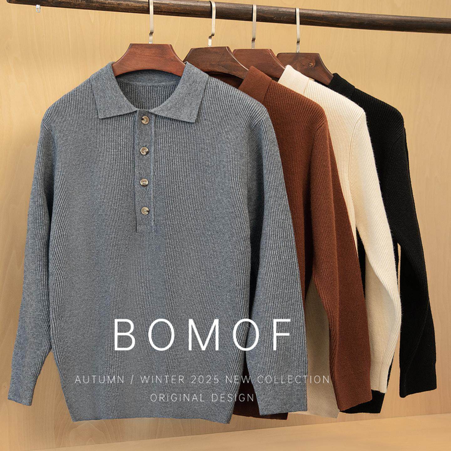 📚 普洛克正品 加厚半高纽扣翻领针织衫含绵羊毛扩版抗起球毛衣630g