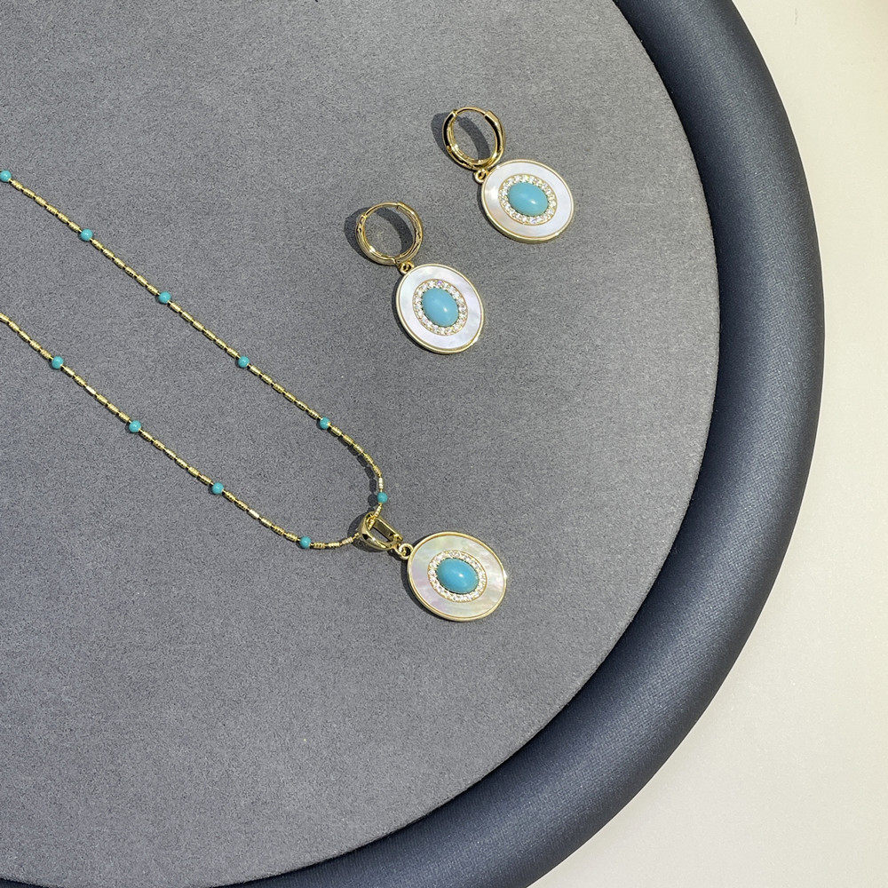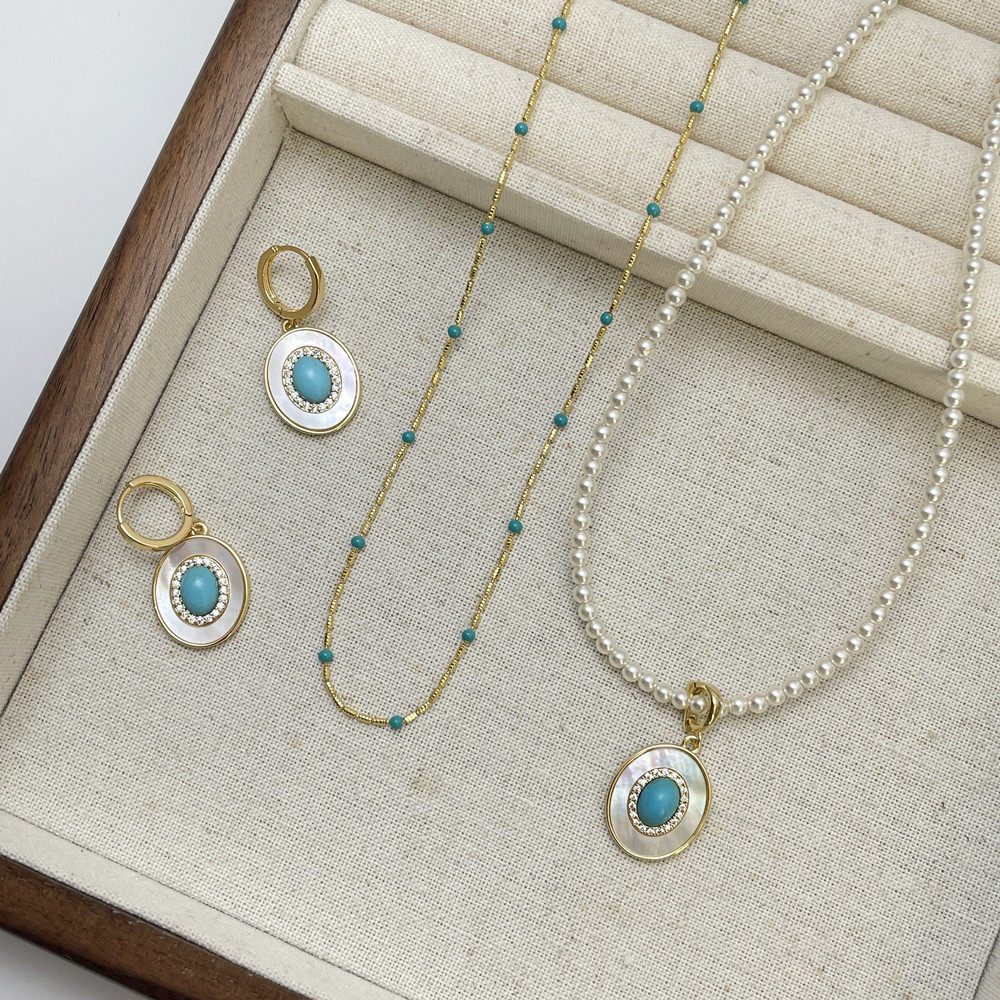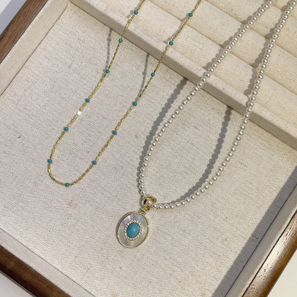 📚 绿松石白贝母吊坠珍珠项链女通勤叠戴气质锁骨链复古轻奢毛衣链