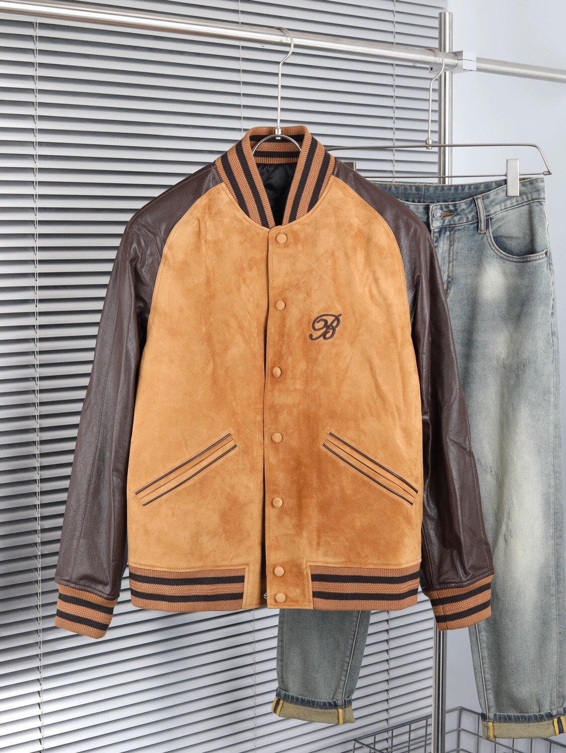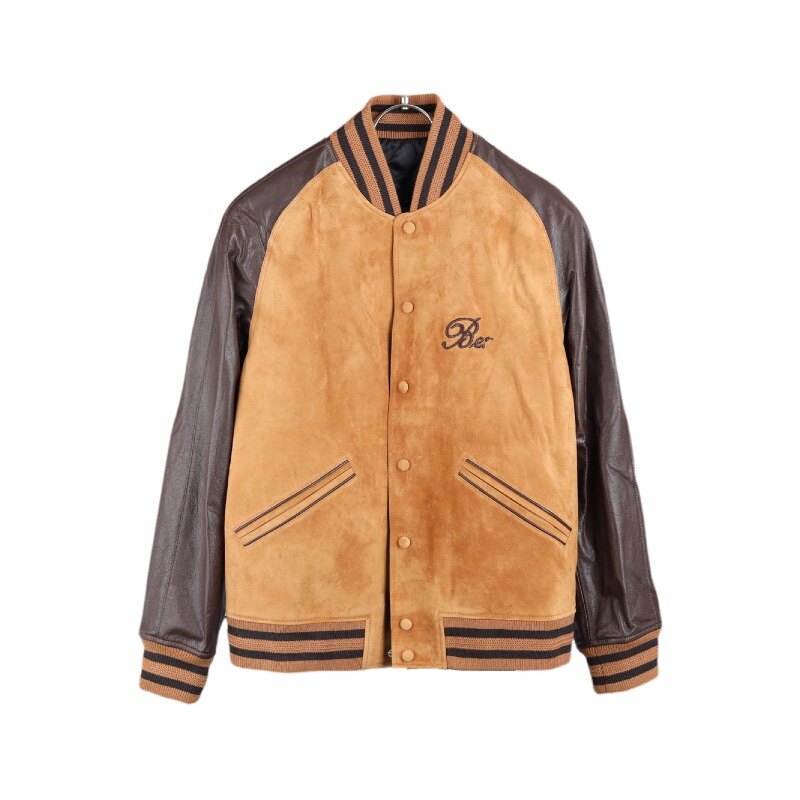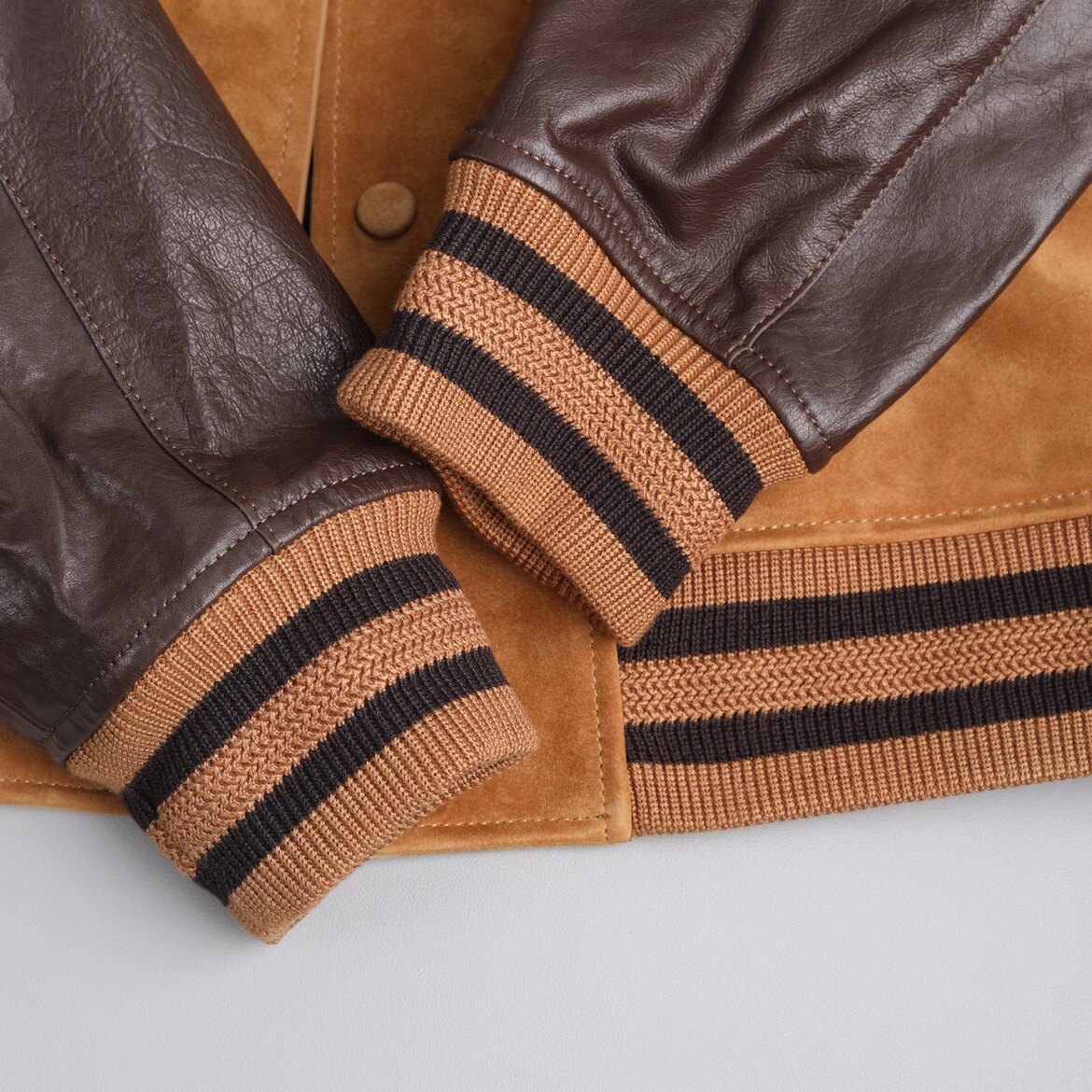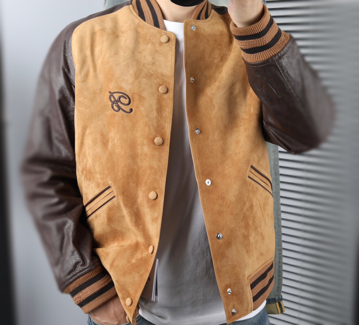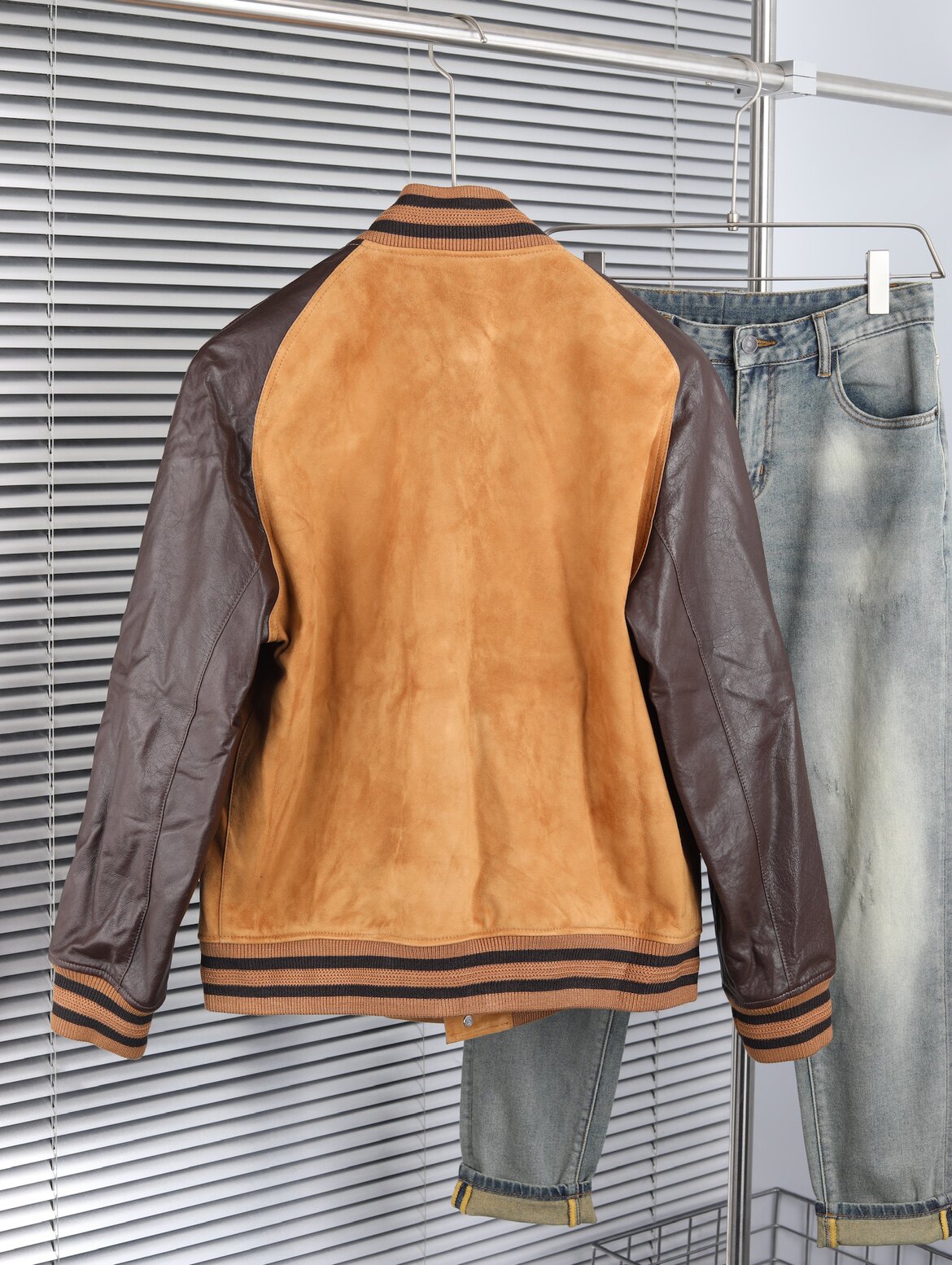📚 欧美复古修身秋冬高奢皮衣贸易货手工马克线缝制绒面皮革棒球服拼