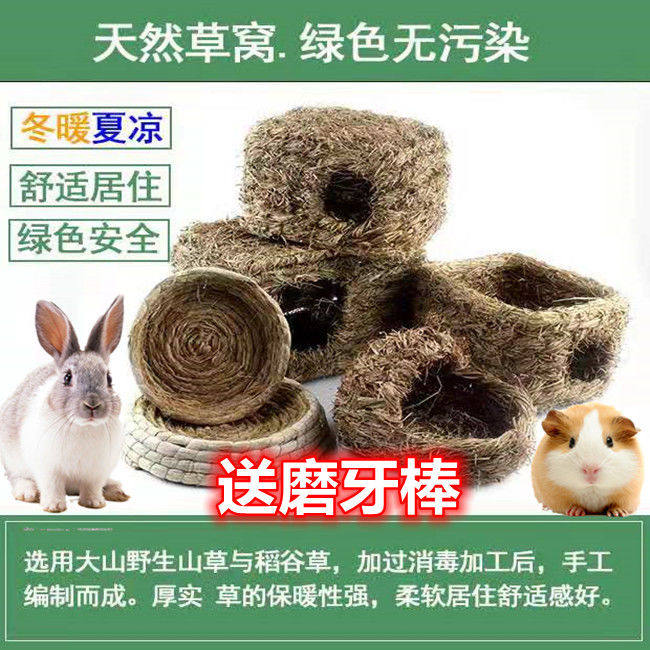 📚 荷兰猪草窝兔子窝豚鼠窝棉窝保暖草垫子手工编织窝屋龙猫宠物用品