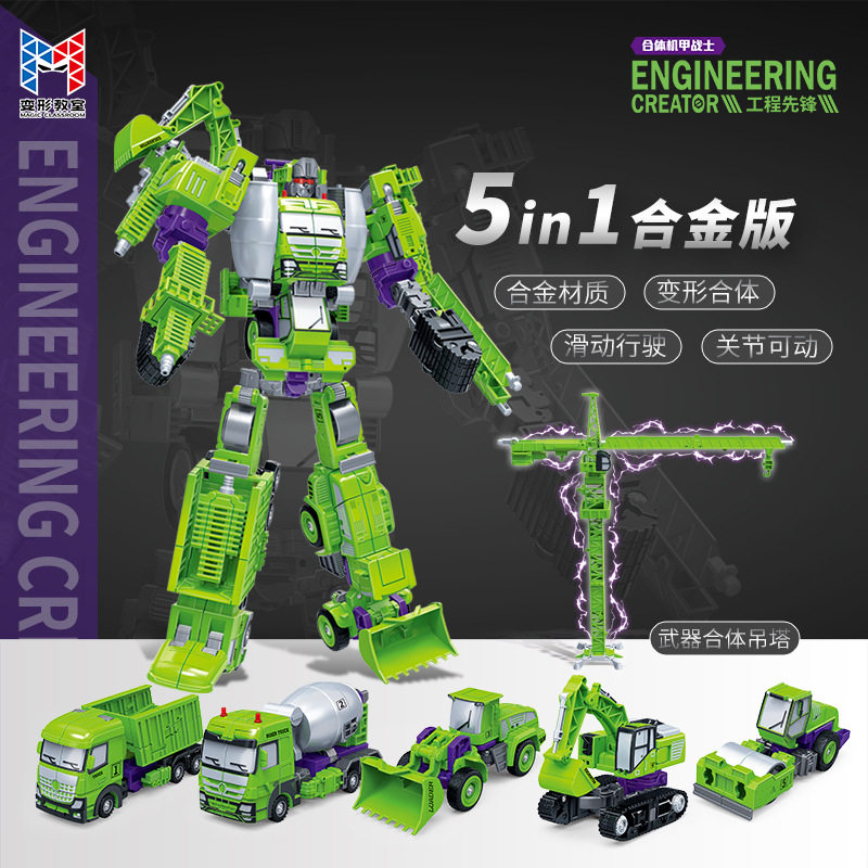 📚 变形工程车机器人金刚合金挖掘机吊车工程车合体变形套装全套