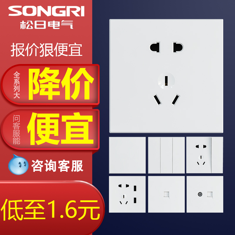 📚 松日墙壁开关插座86型一开五孔USB暗装面板单双联控家用A1白色