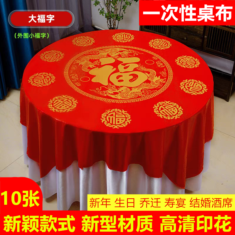 📚 新年福字一次性桌布圆桌方桌台布春节宴会过年酒席红色餐桌布昼夜