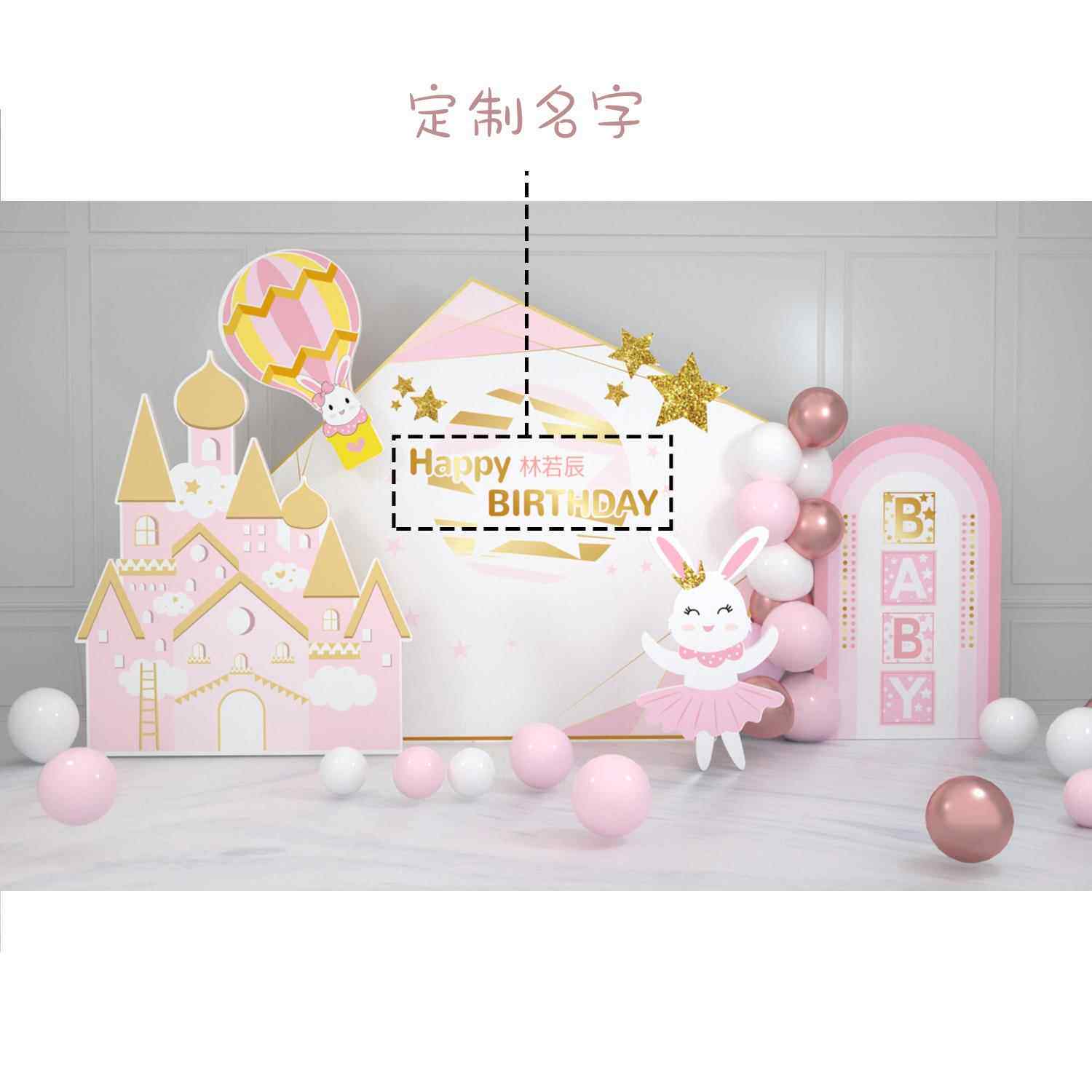 📚 女宝宝生日百天周岁热气球小兔房间布置KT板龙卡板名字定制宝宝宴