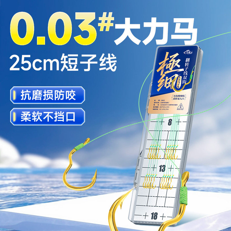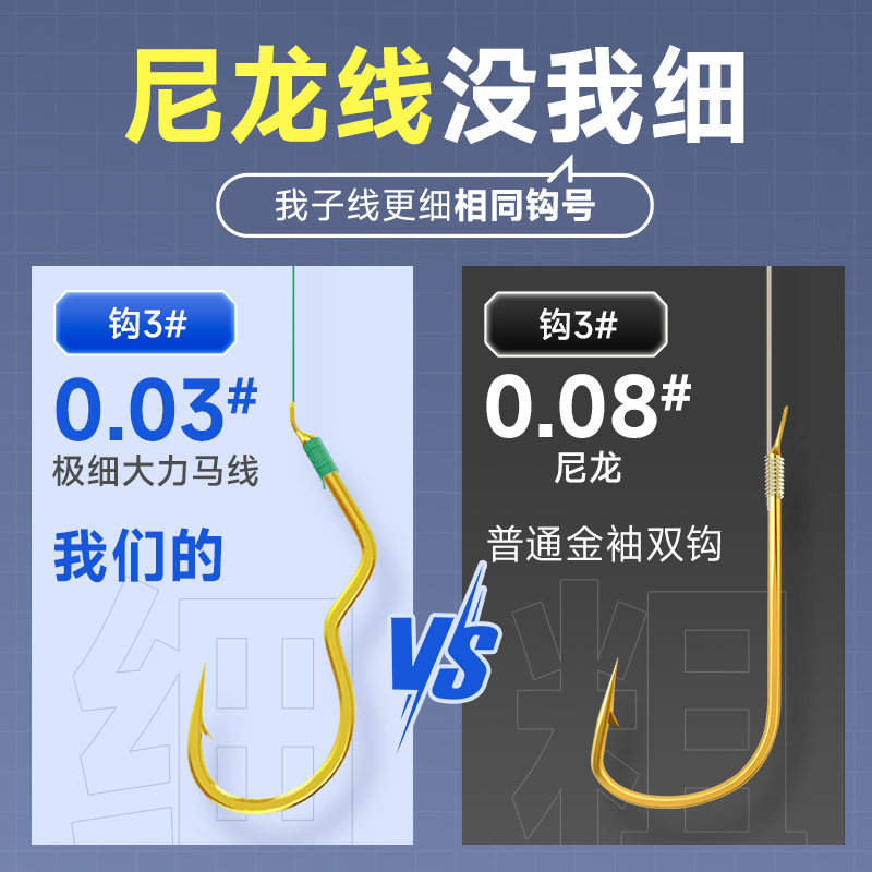 📚 超细大力马短子线金袖双钩成品绑好小号野钓鱼钩翻转钩正品鲫鱼钩