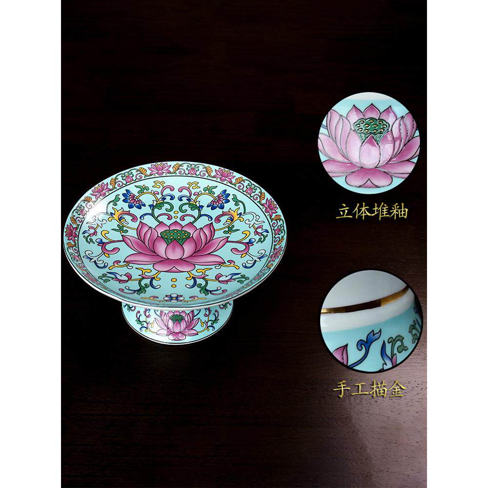 📚 珐琅果盘佛前供养盘佛前陶瓷高贡盘财神佛庙坛观音莲花佛器物
