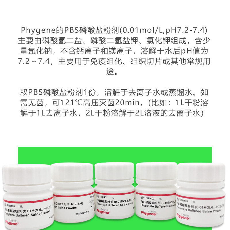 📚 PBS磷酸盐粉剂缓冲液 0.01mol/L pH7.2-7.4 [PH1403 PHYGENE]