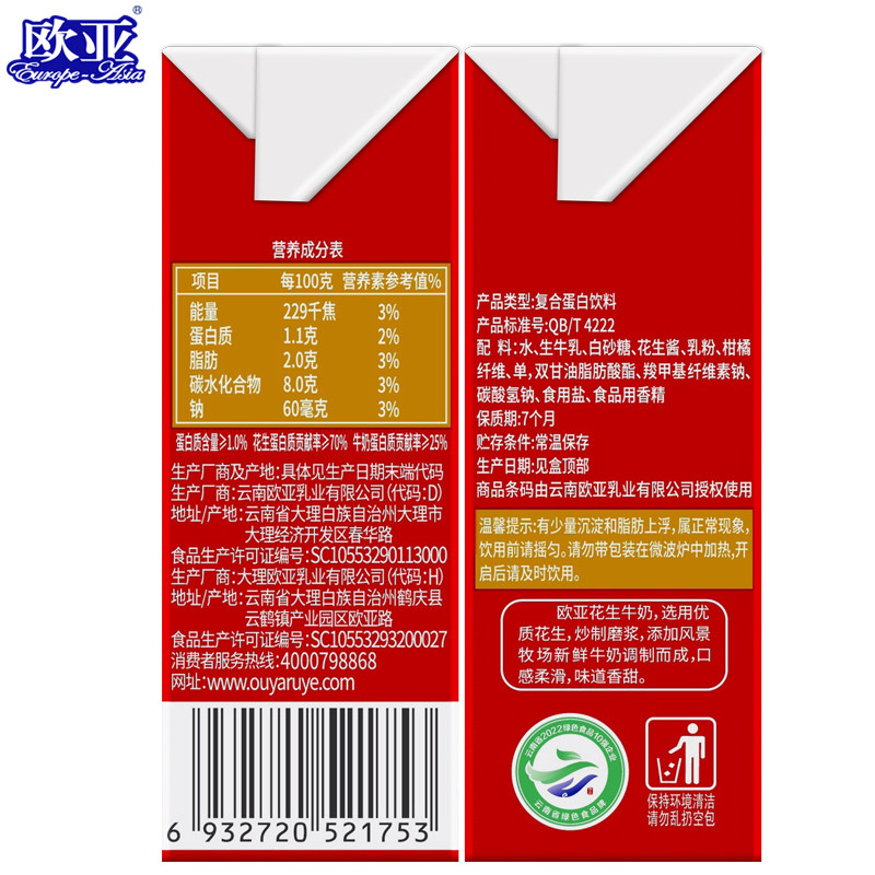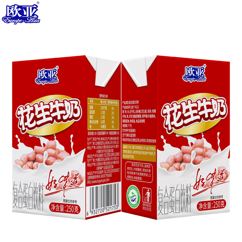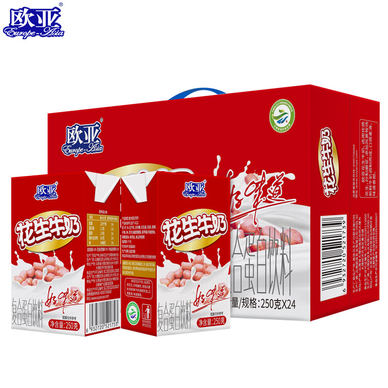 📚 【日期新鲜】欧亚花生牛奶饮品250g*24盒/箱早餐整箱大理乳制品