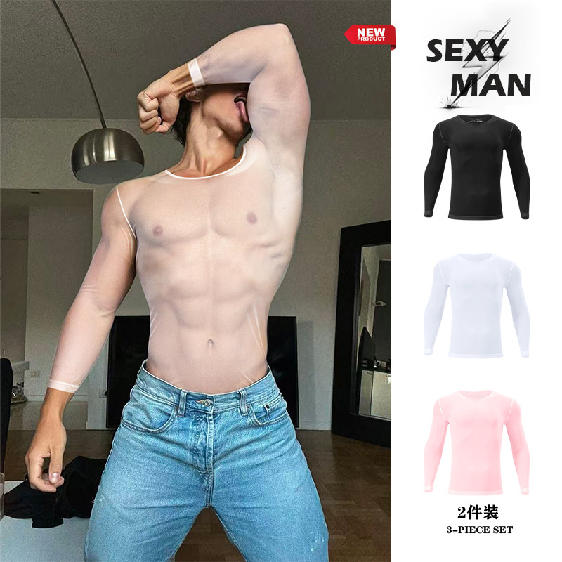 📚 两条装男士超薄隐形塑型高弹打底衣透明长袖透气锁温运动性感纯色