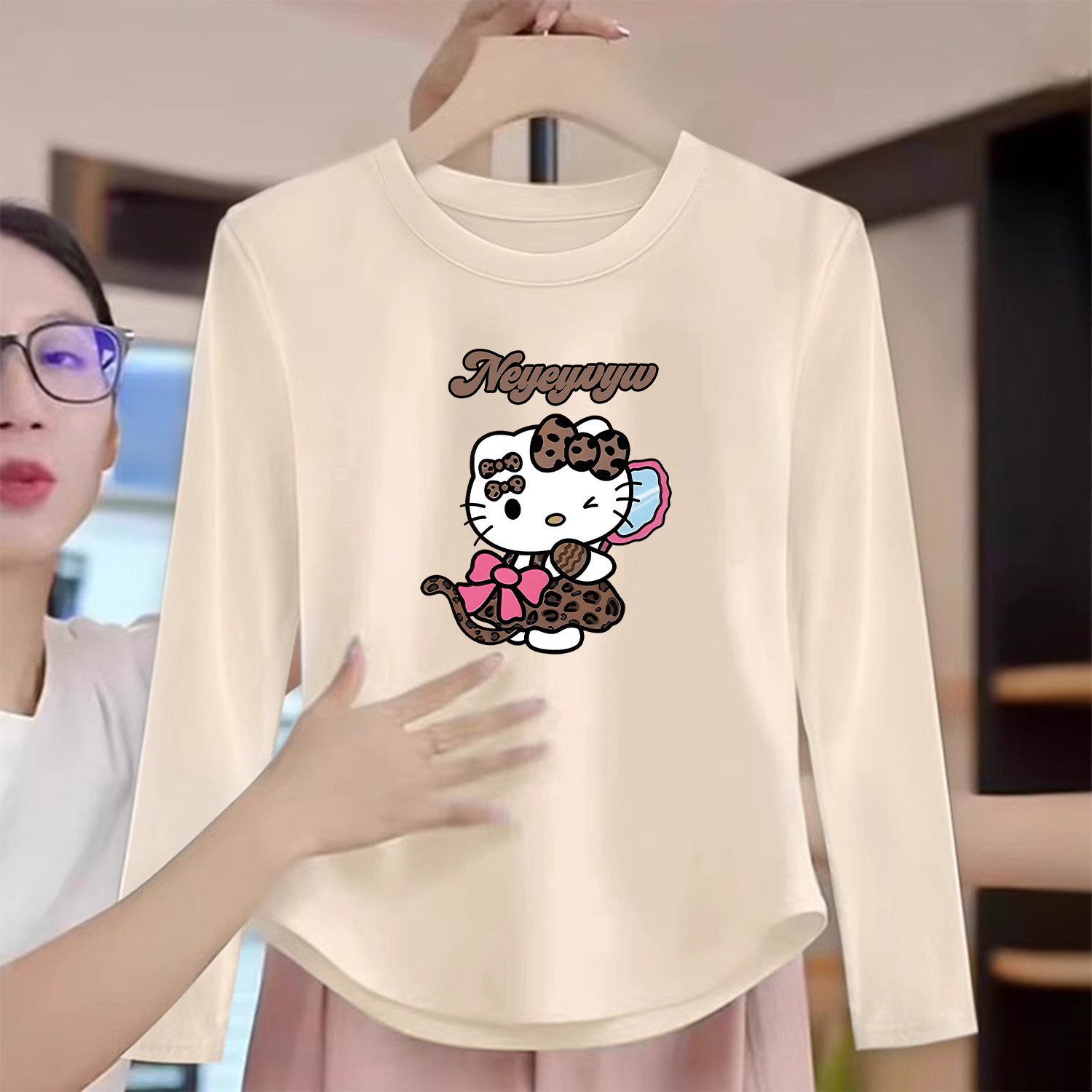 📚 女童德绒打底衫内搭修身短款不规则儿童洋气kt猫长袖T恤加绒上衣