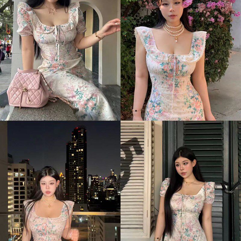 📚 速发款法玄七2024春季新黑泽式方领收腰气质长短碎花连衣裙