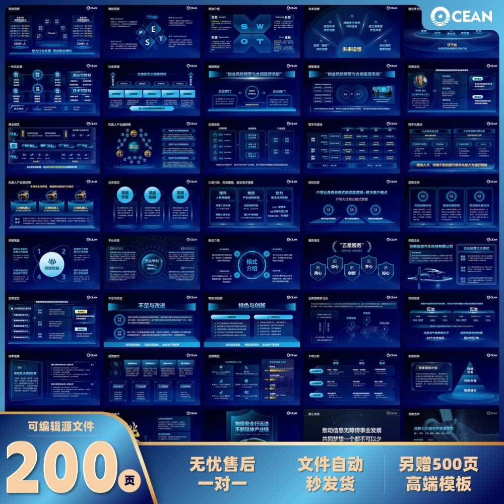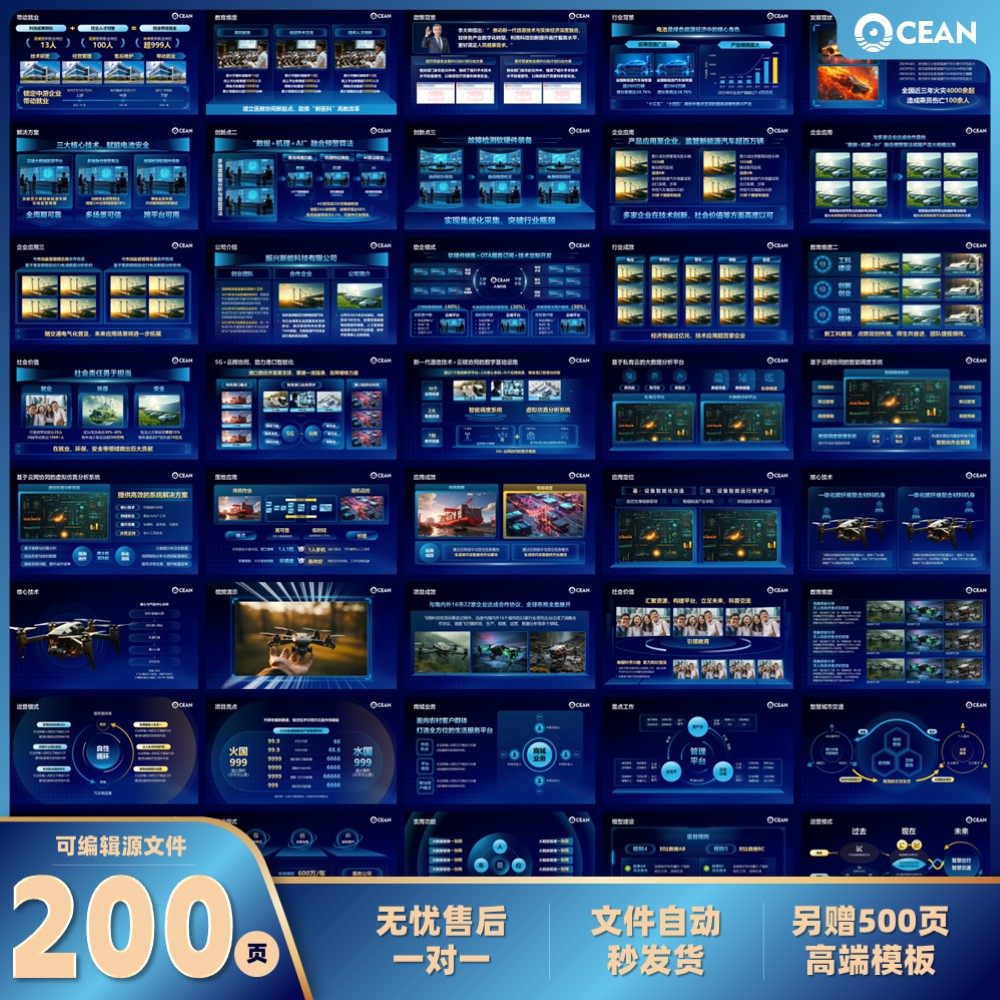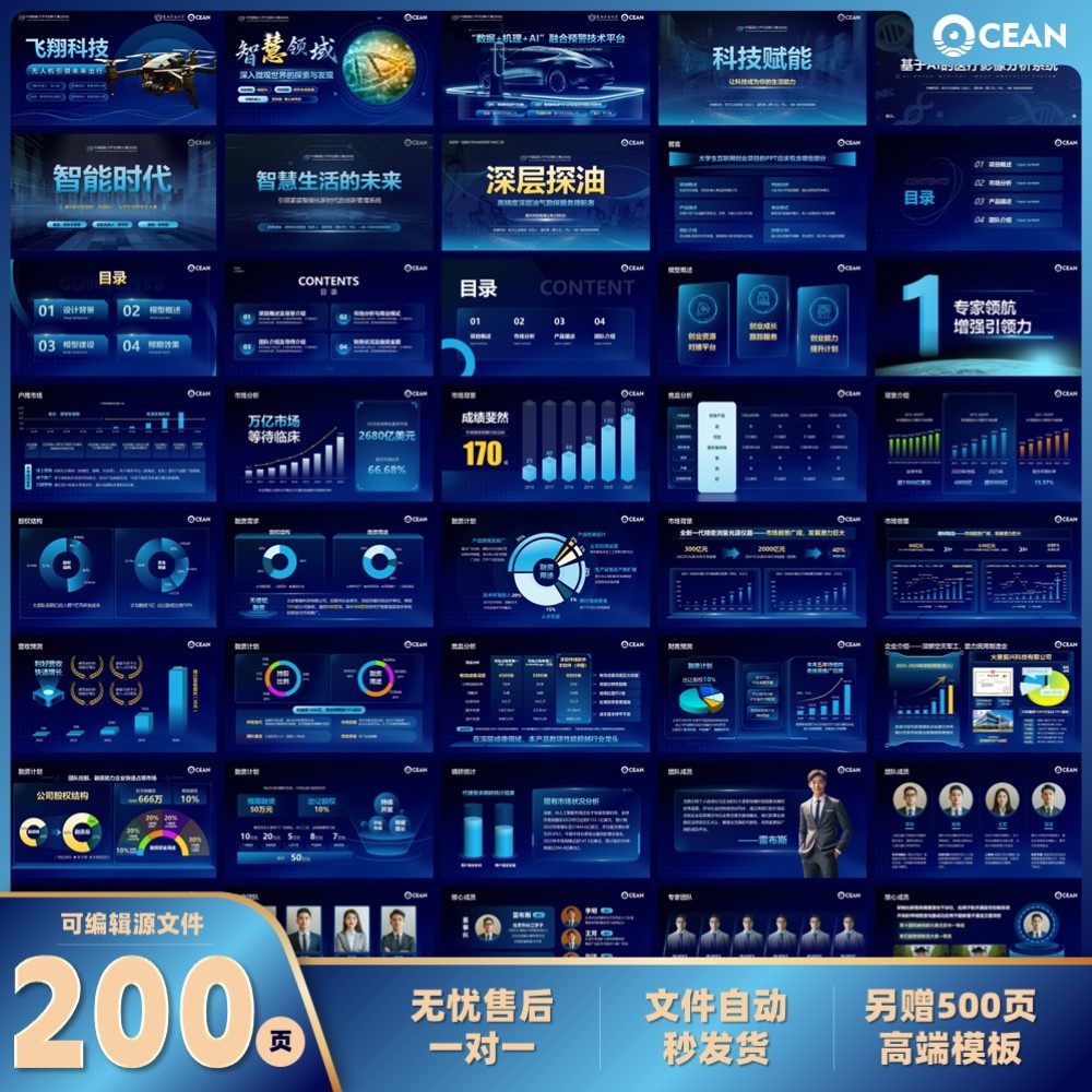 📚 200页PPT模板大学生创新创业大赛挑战杯工作汇报科技风可编辑模板
