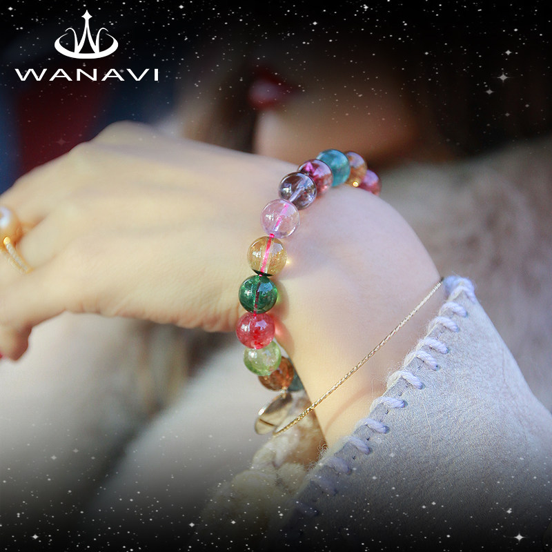 📚 瓦萨比巴西彩虹碧玺手链女水晶糖果单圈手串闺蜜时尚首饰送礼物