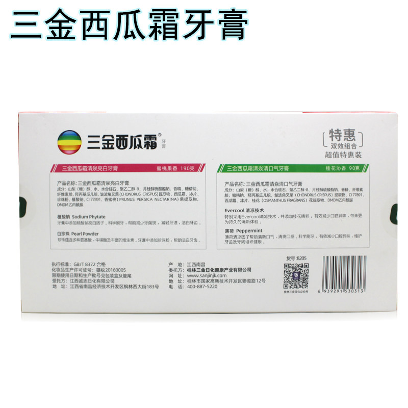 📚 三金西瓜霜牙膏霜雪青炎口腔亮白牙齿清新口气牙膏190g+90g正品