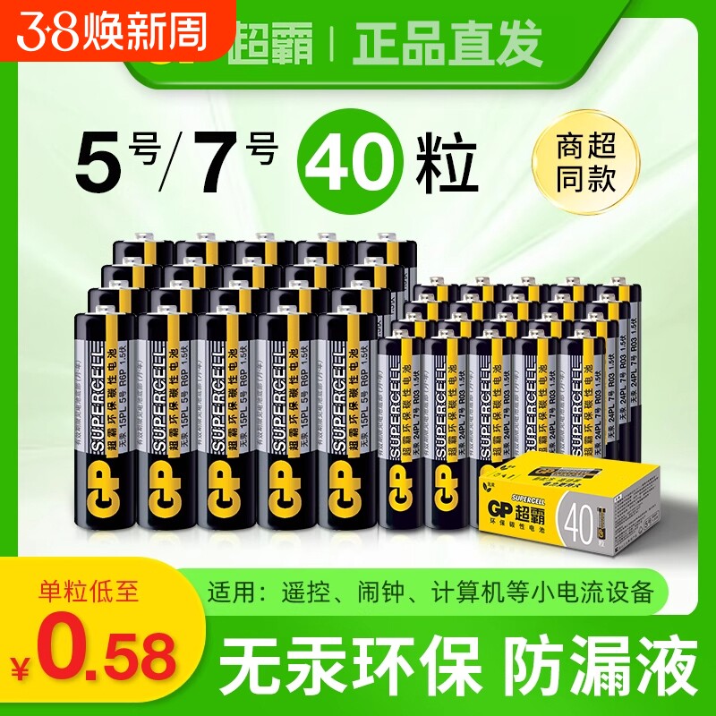📚 GP超霸5号7号绿超高性能干电池五号七号体重秤电池鼠标键盘空调电视机顶盒遥控器电池闹钟儿童电子玩具泡泡机