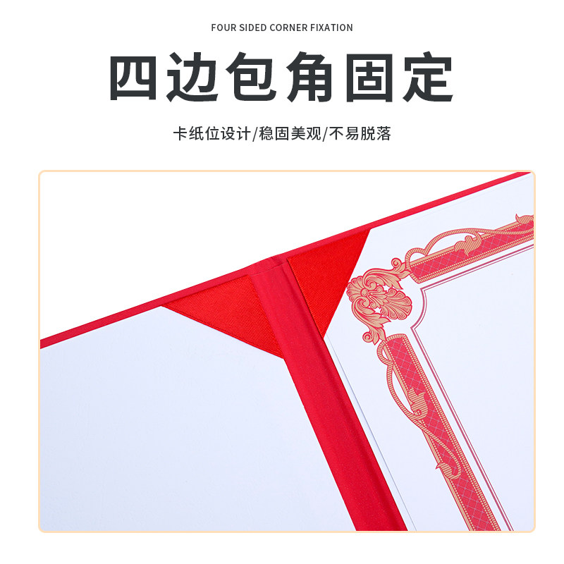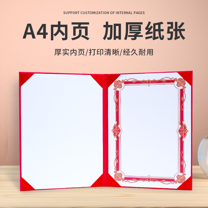 📚 A4红色双内页朗诵本烫金证书封套外壳磨砂珠光面皮革面诗歌朗诵夹演讲主持人稿演讲本夹荣誉证书签约仪式本
