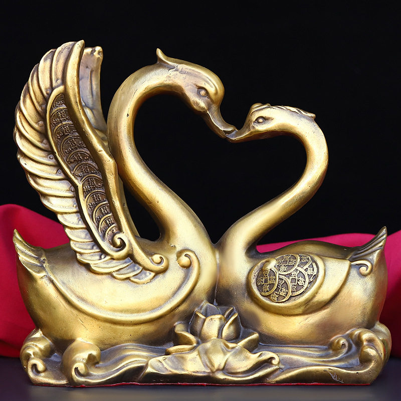 📚 精工纯铜天鹅摆件比翼双飞幸福美满情侣结婚礼品卧室装饰品工艺品