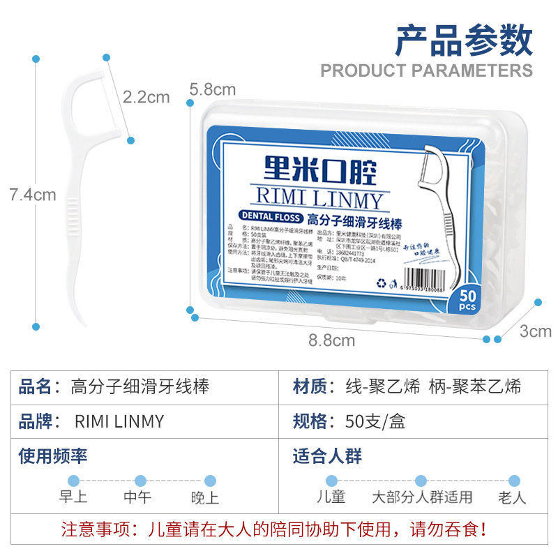 📚 里米牙线口腔支高拉力细滑牙线棒塑料牙签牙线便携牙线50支盒装官