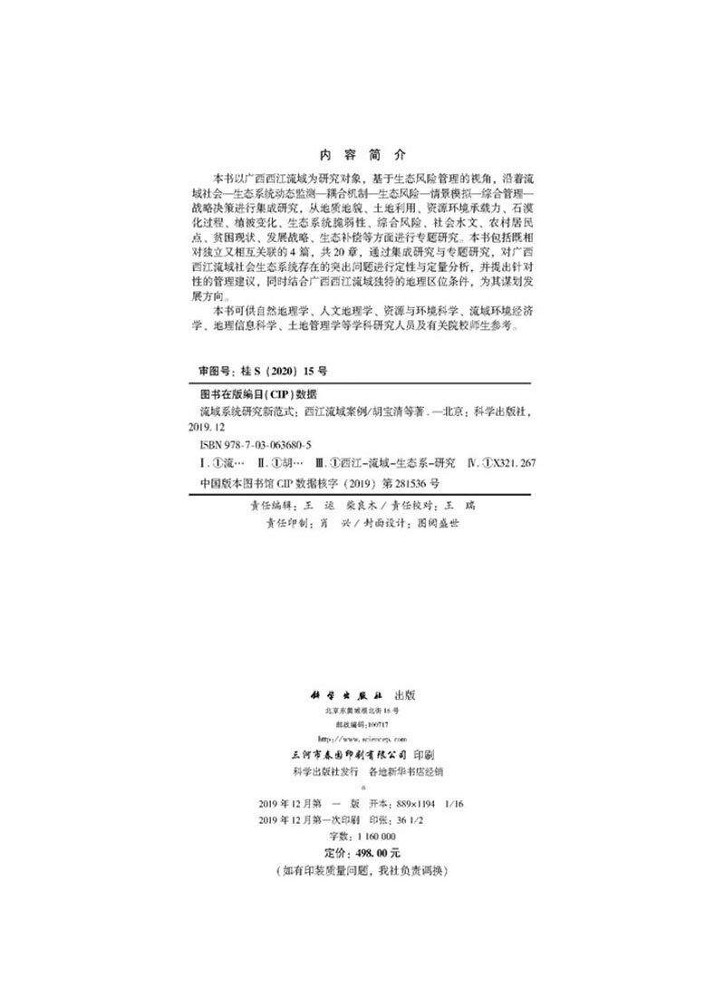 📚 现货流域系统研究新范式西江流域案例胡宝清等著科学出版社9787030636805