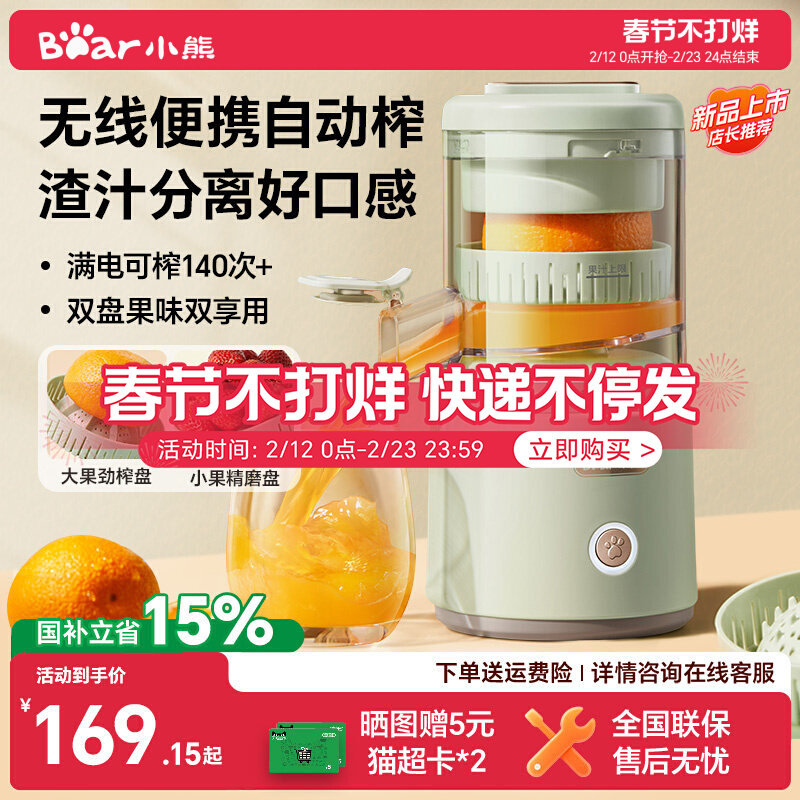 49¥ HU006 soLtUMrCsK8¥ https://m.tb.cn/h.7CKwy8C 小熊榨汁机汁渣分离全自动小型电动无线便携橙子果汁原汁橙汁机 --------------------- 【原售价】459元 【现售价】299元。