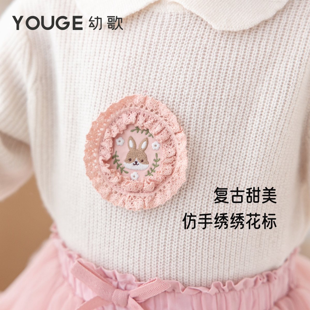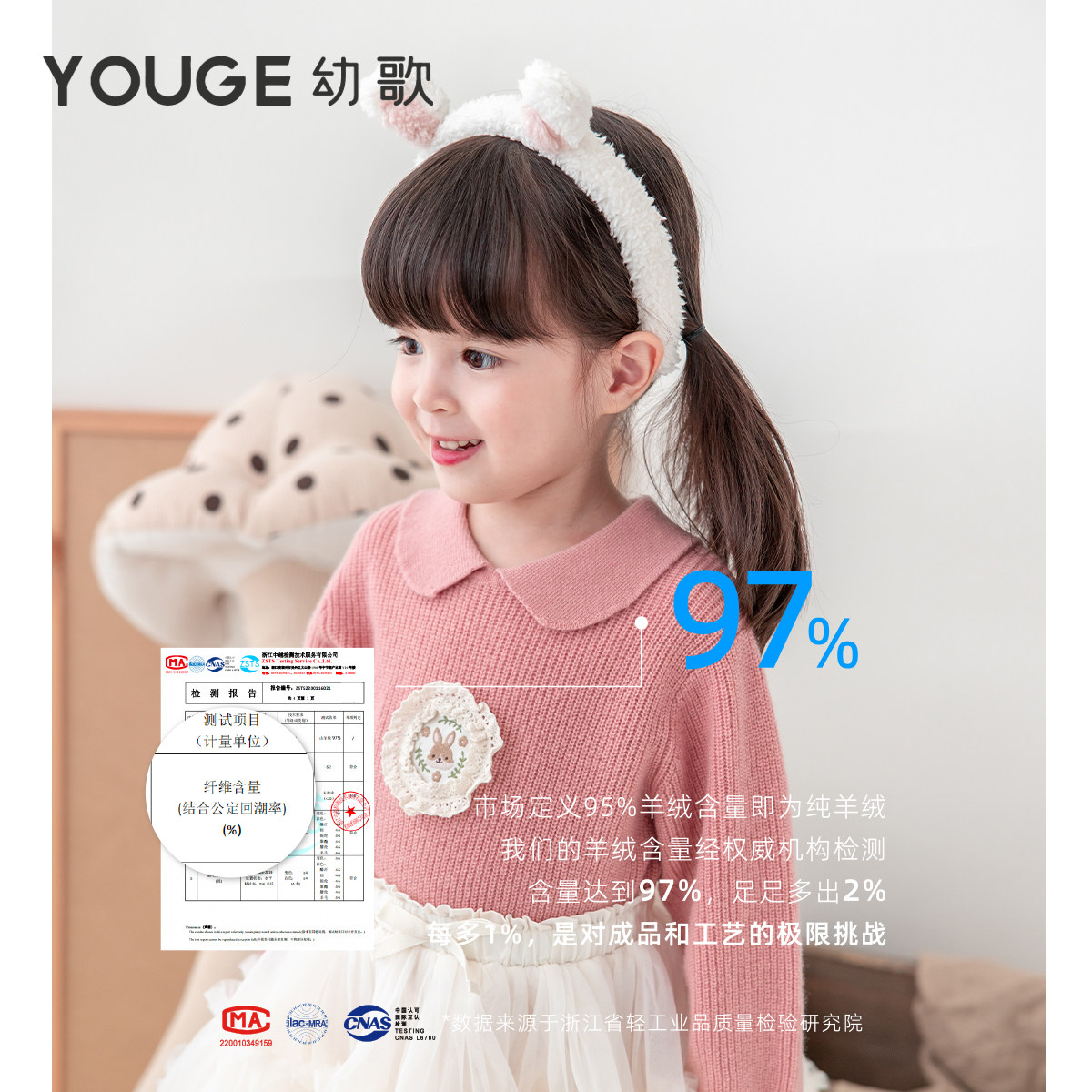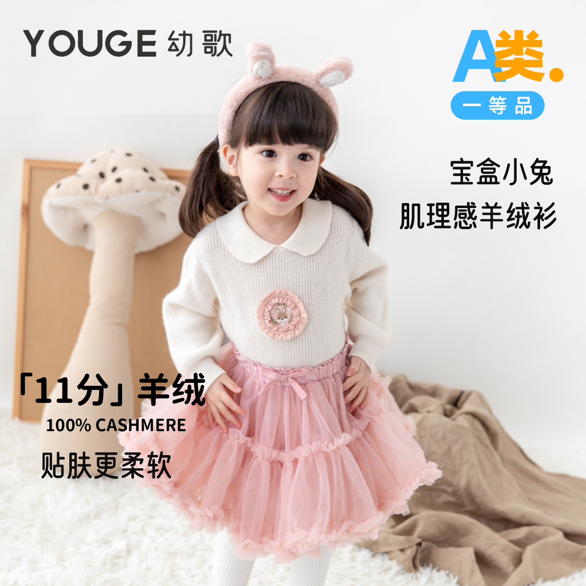 📚 【阿拉善羊绒】幼歌婴幼儿秋冬新款卡通兔羊绒衫防风保暖翻领毛衣