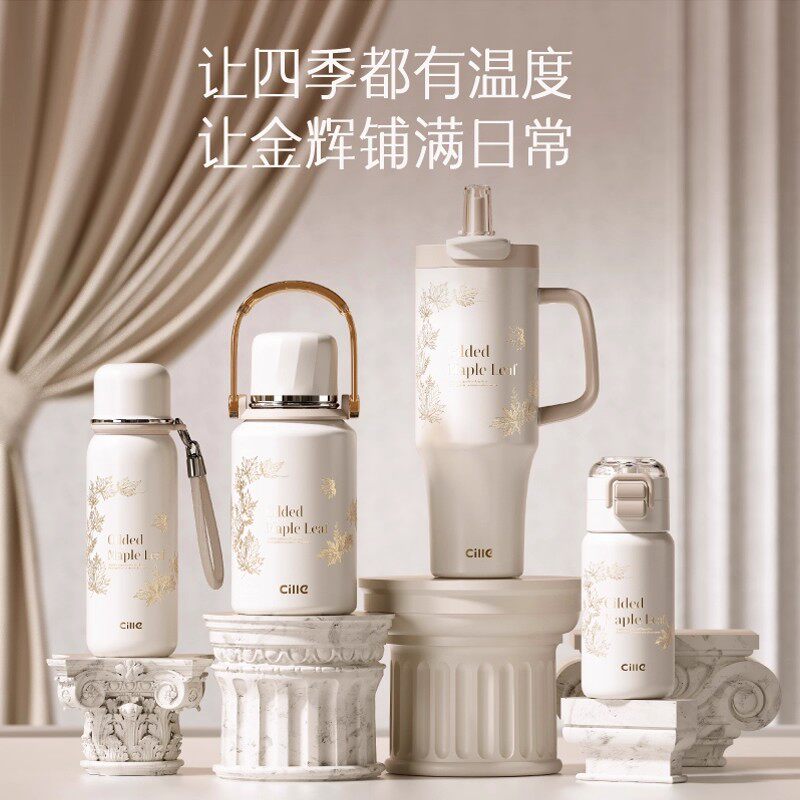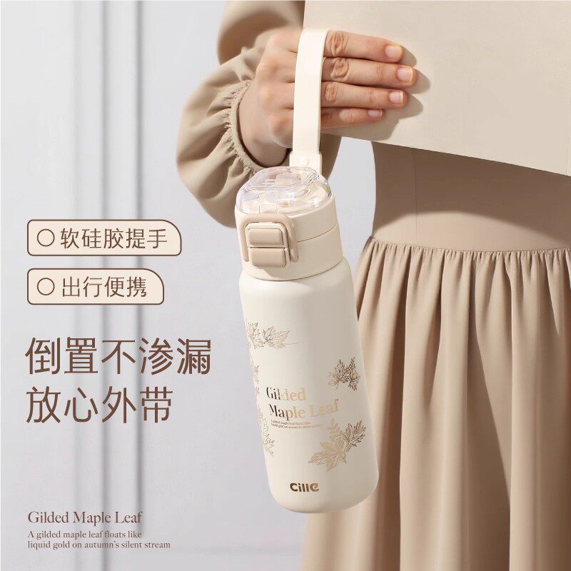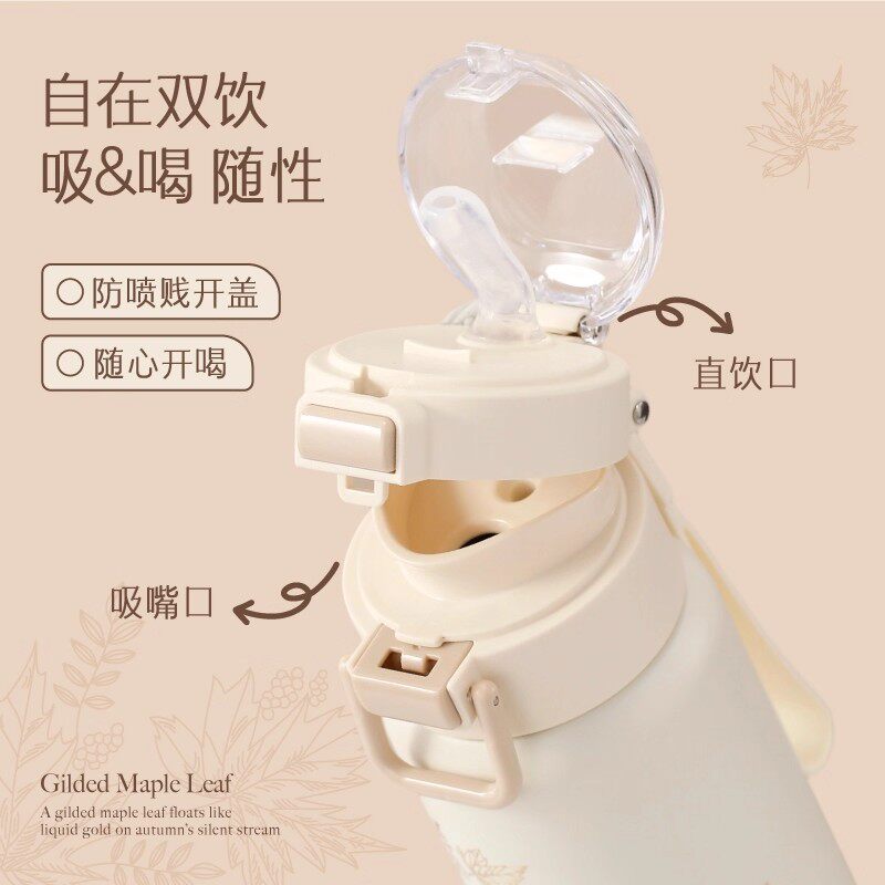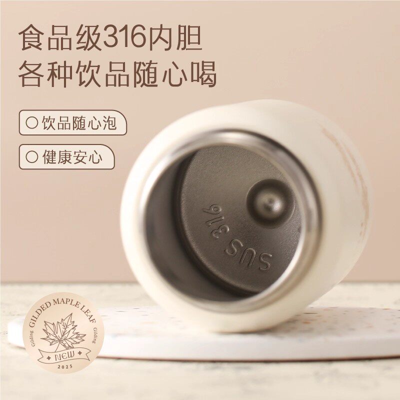 📚 希乐鎏金枫叶系列保温杯女生2025新款316不锈钢学生吸管水杯便携
