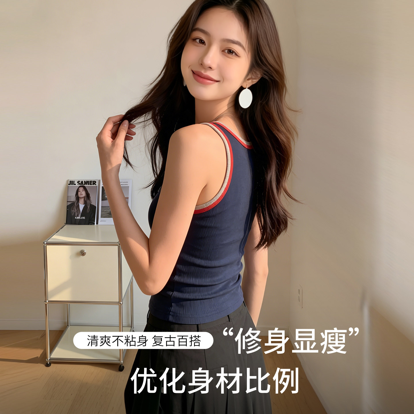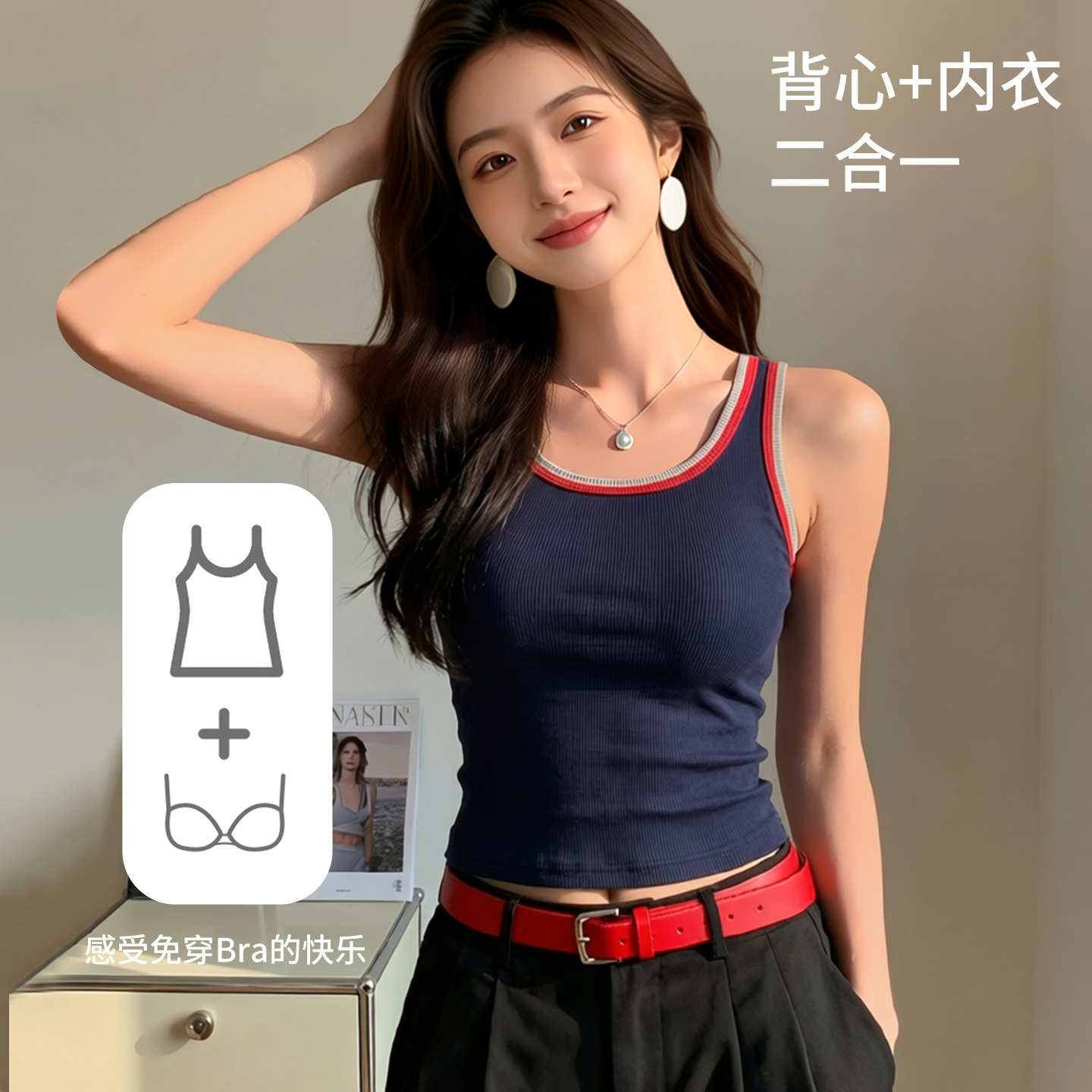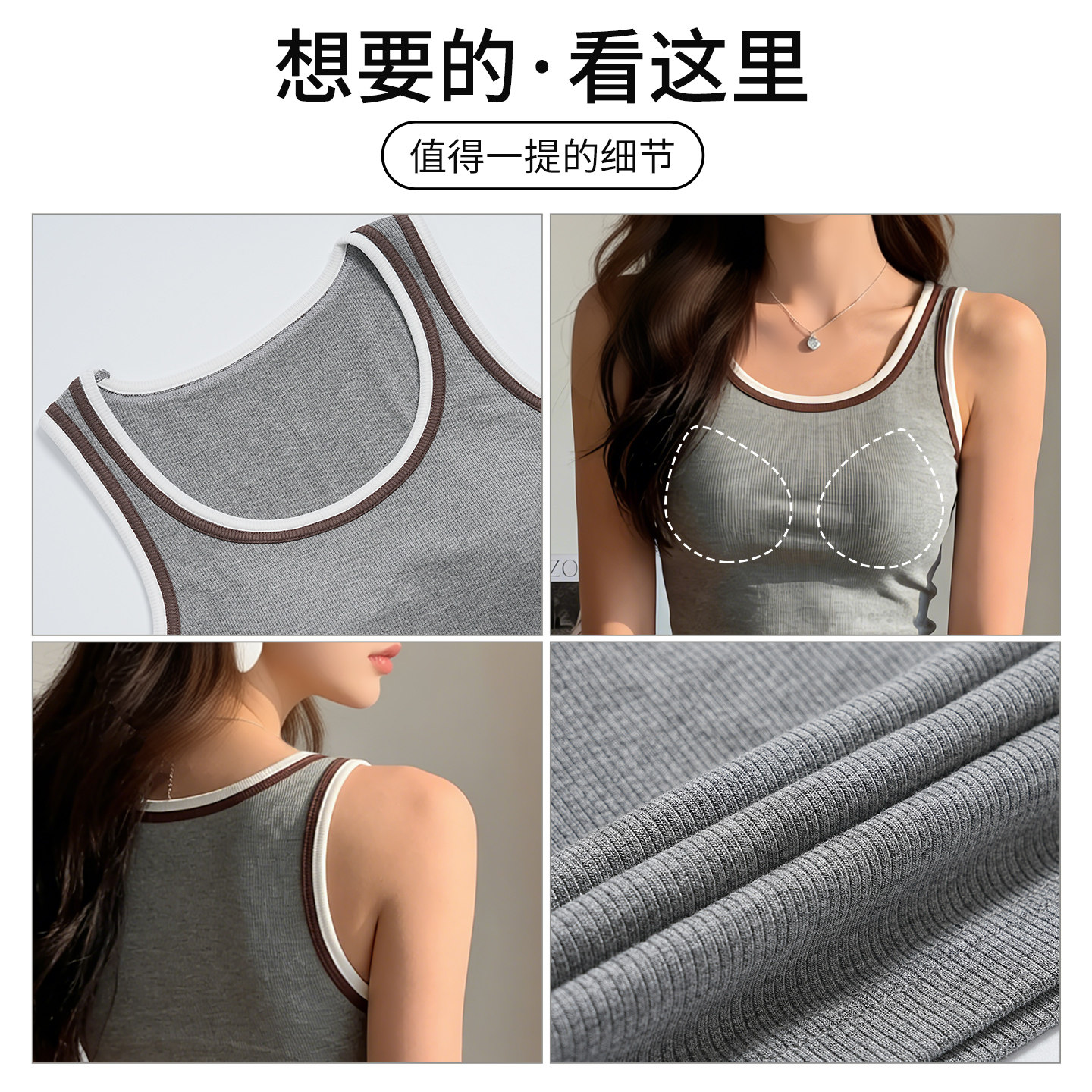 📚 撞色美背吊带背心女2026春夏新款带胸垫内搭外穿显瘦通勤百搭上衣