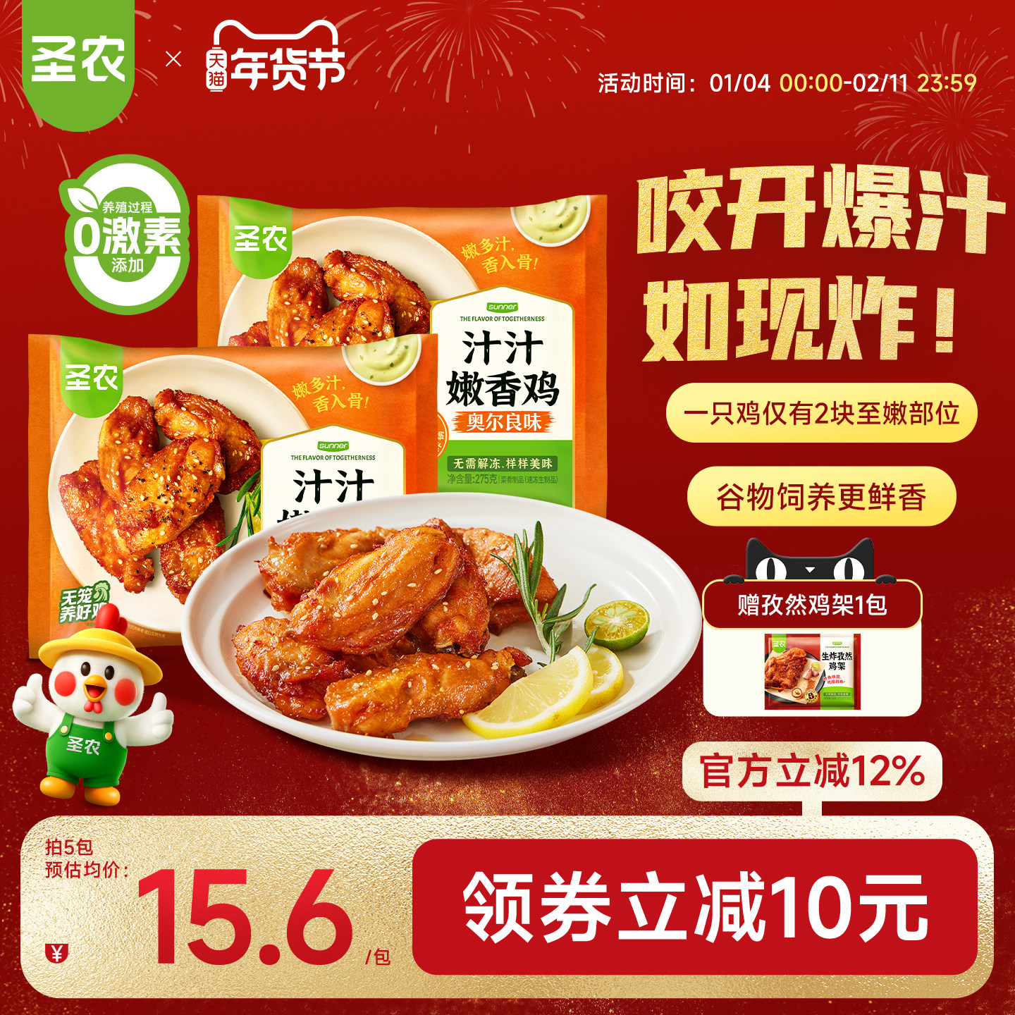 📚 圣农汁汁嫩香鸡奥尔良鸡伴翅275g*5包速食套餐空气炸锅半成品食材