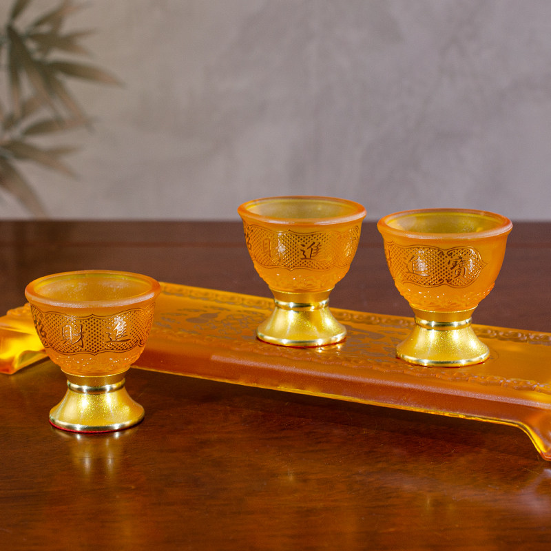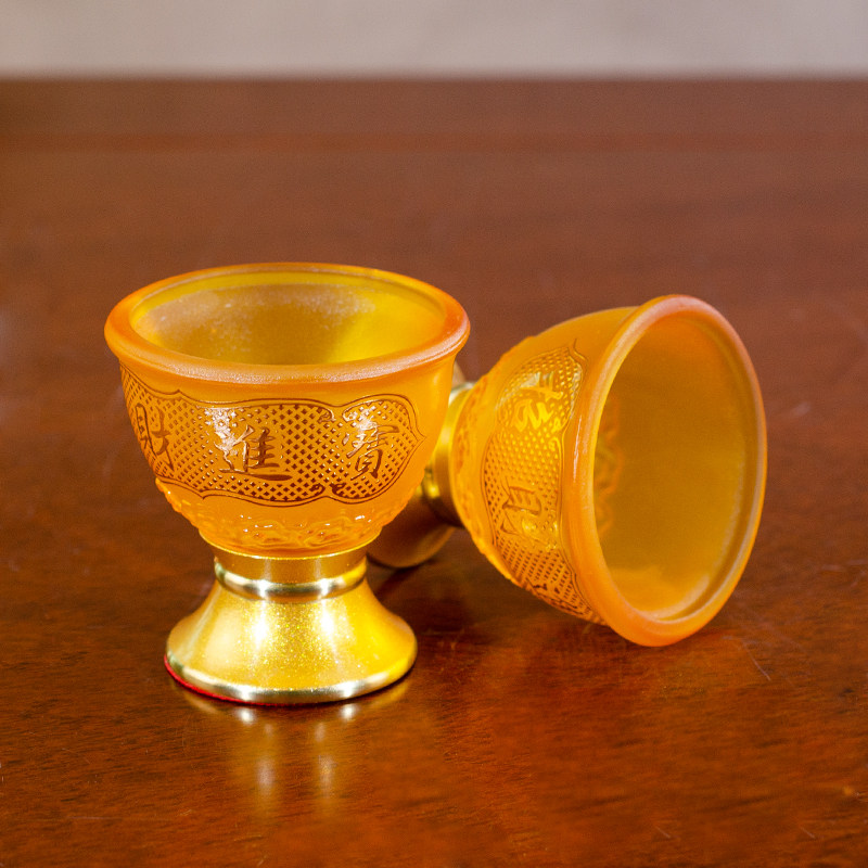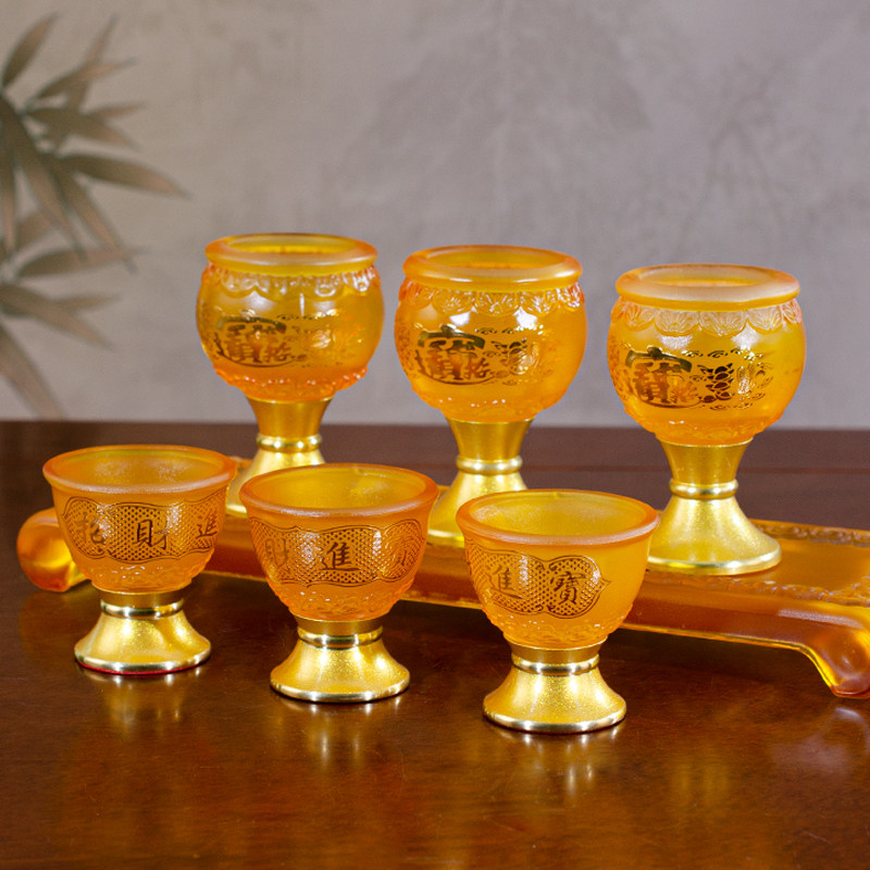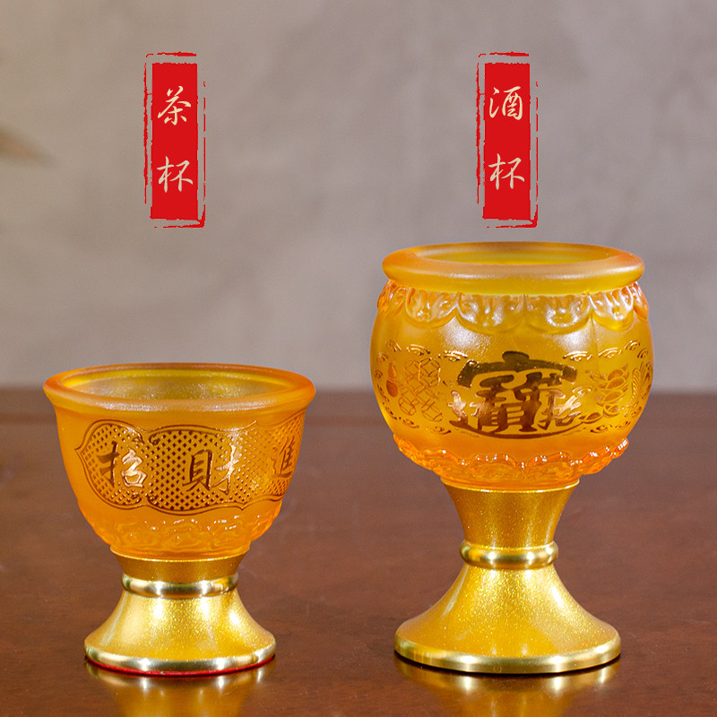 📚 家用奉财神招财进宝酒杯高脚仿琉璃供杯祖先贡酒杯倒茶水杯琉璃杯