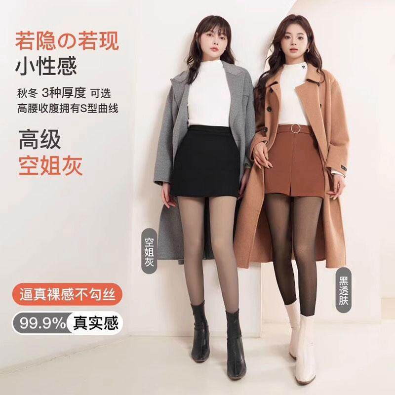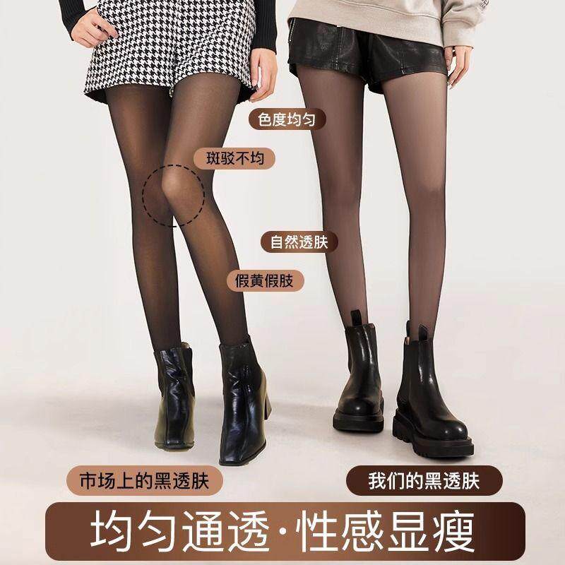 📚 黑透肤假透肉打底裤袜女黑色丝袜秋冬加绒加厚一体光腿神器连体袜
