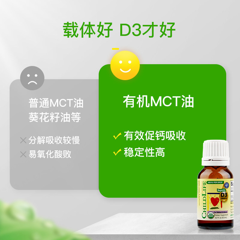 📚 美国原装进口婴幼儿童ChildLife童年时光有机d3维生素90滴剂VD3
