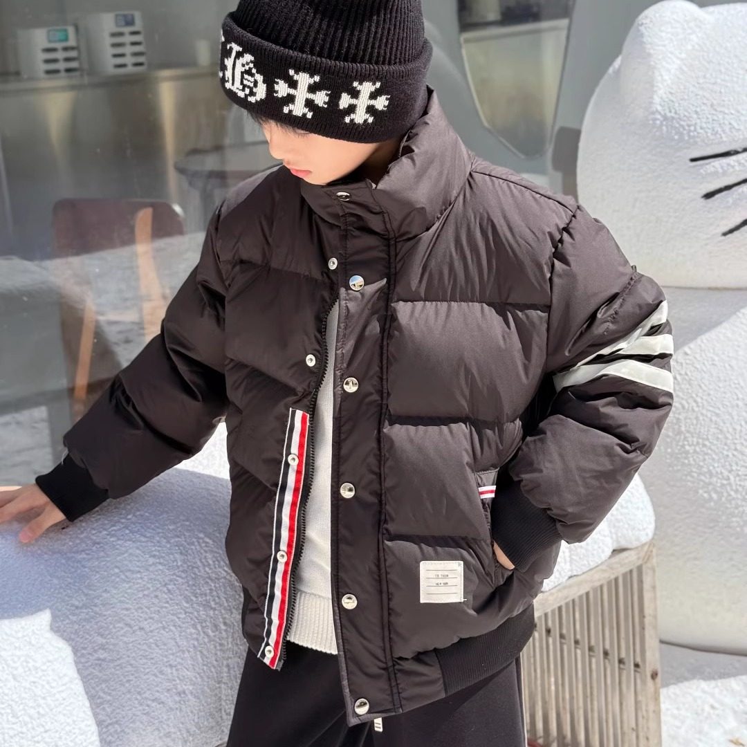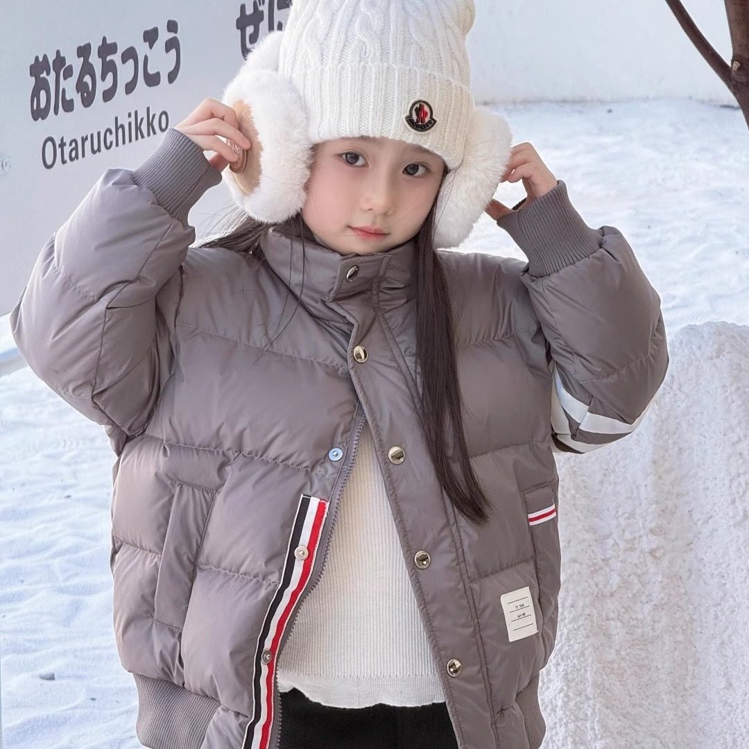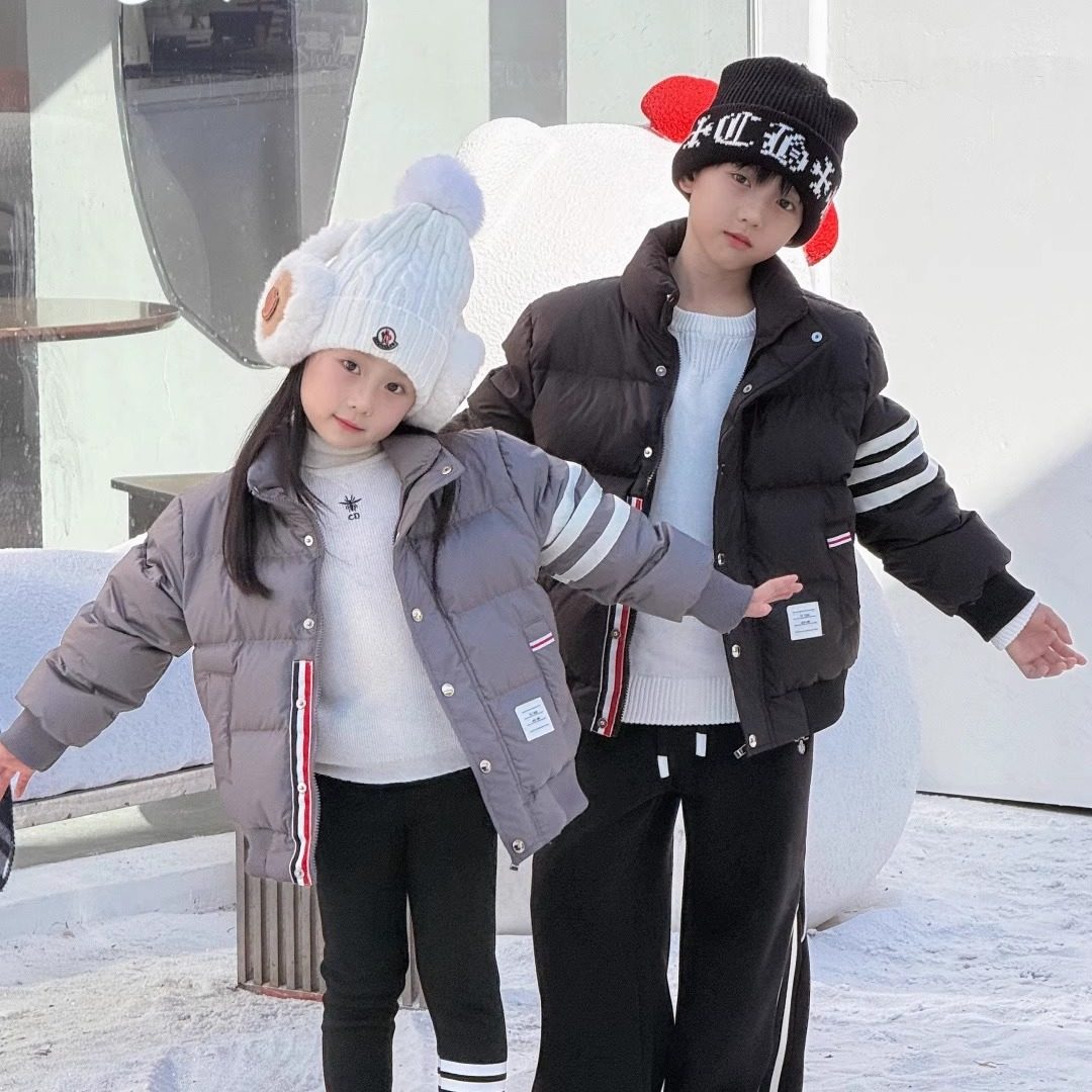 📚 25年寒冬男女儿童防风加厚加绒服TB白鸭绒短款正常纯色羽绒服棉袄