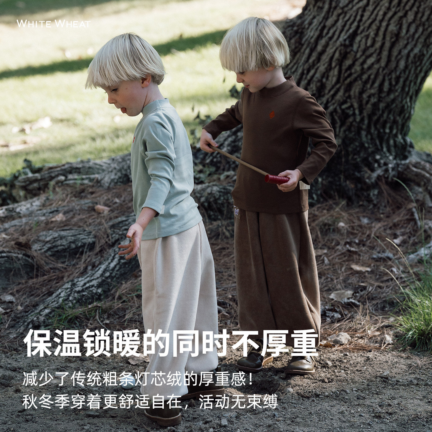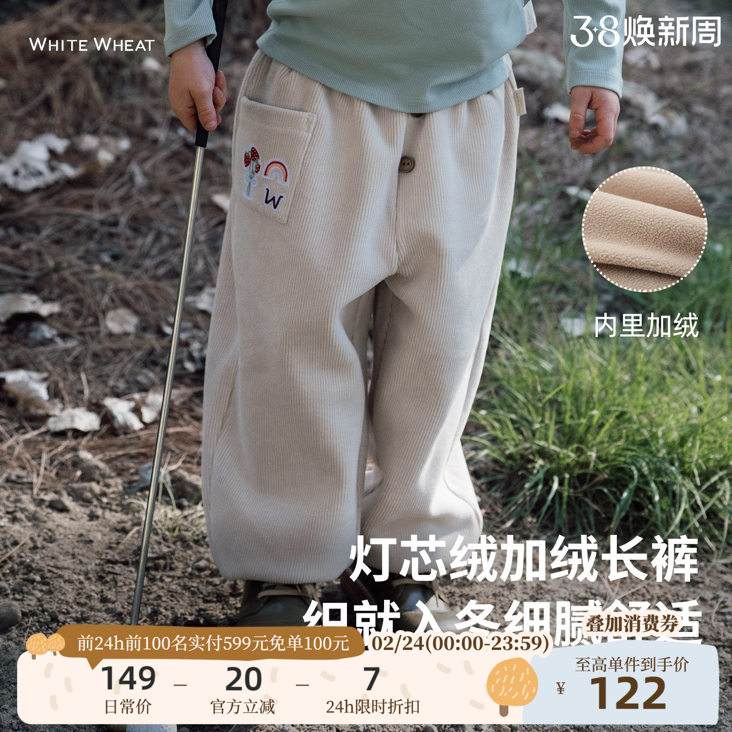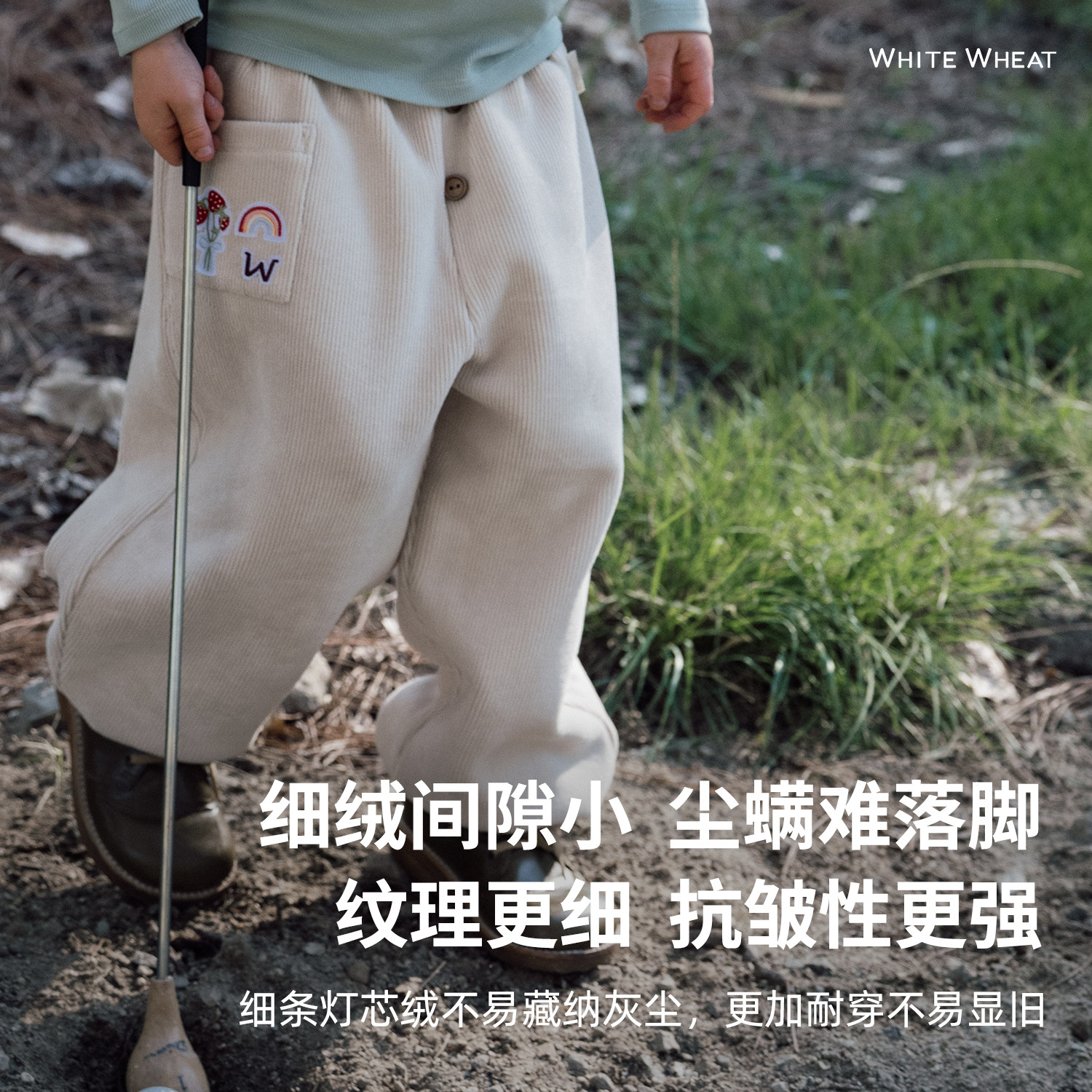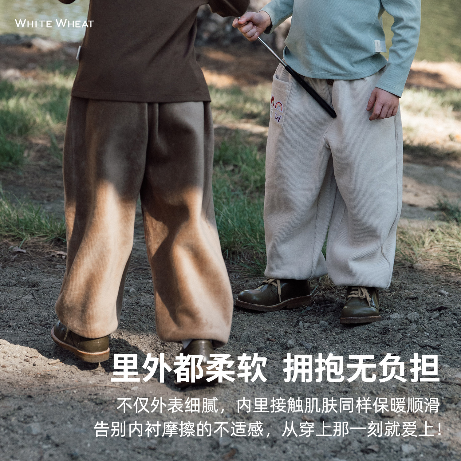 📚 whitewheat儿童2025冬季新款灯芯绒长裤男女童针织宝宝束脚裤加绒