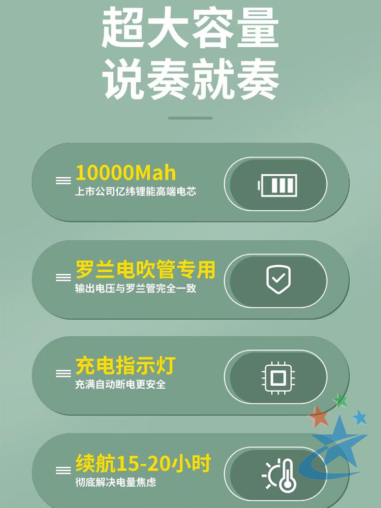 📚 罗兰电吹管锂电池AE30/20/10管外挂龟源通用安全续航10时10000mAh
