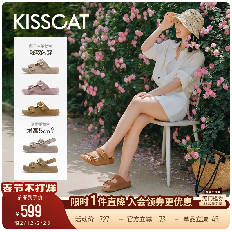 📚 [胡可推荐]接吻猫[椰椰]系列舒适厚底增高凉拖外穿勃肯拖沙滩鞋