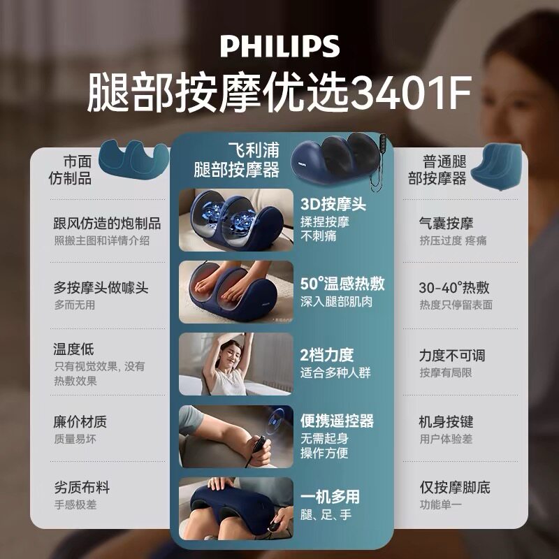 📚 飞利浦小腿部按摩器全自动揉捏脚底足疗机家用按摩送父母新年礼物