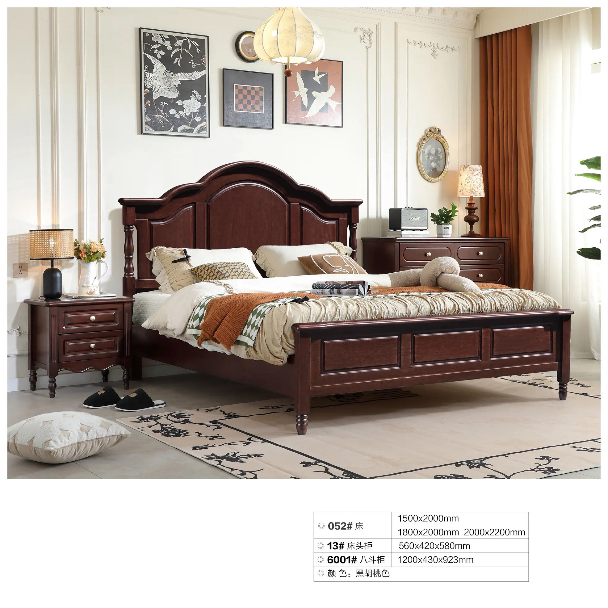 📚 复古实木床美式床双人床主卧大床2米x2米2乡村1米8现代简约一米五