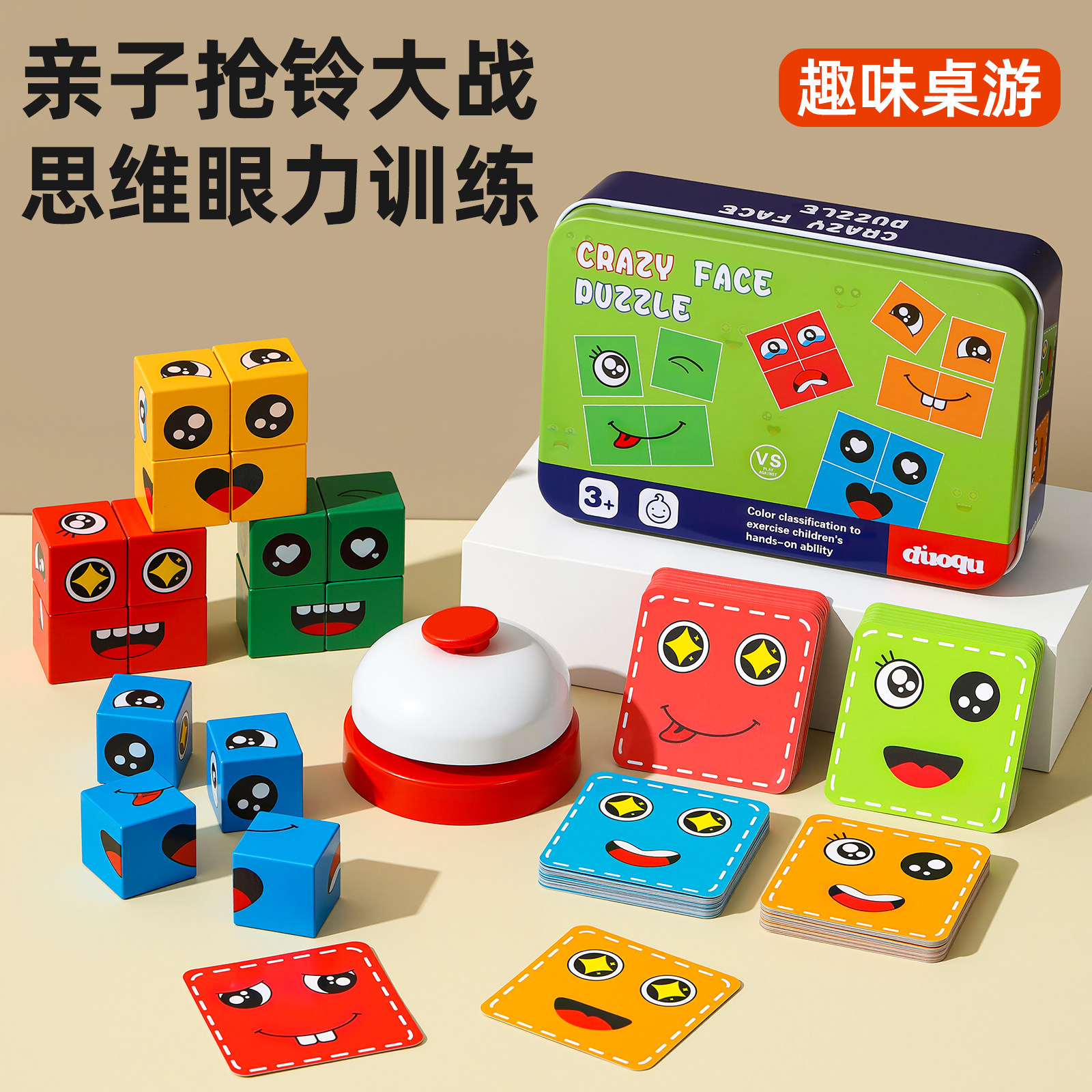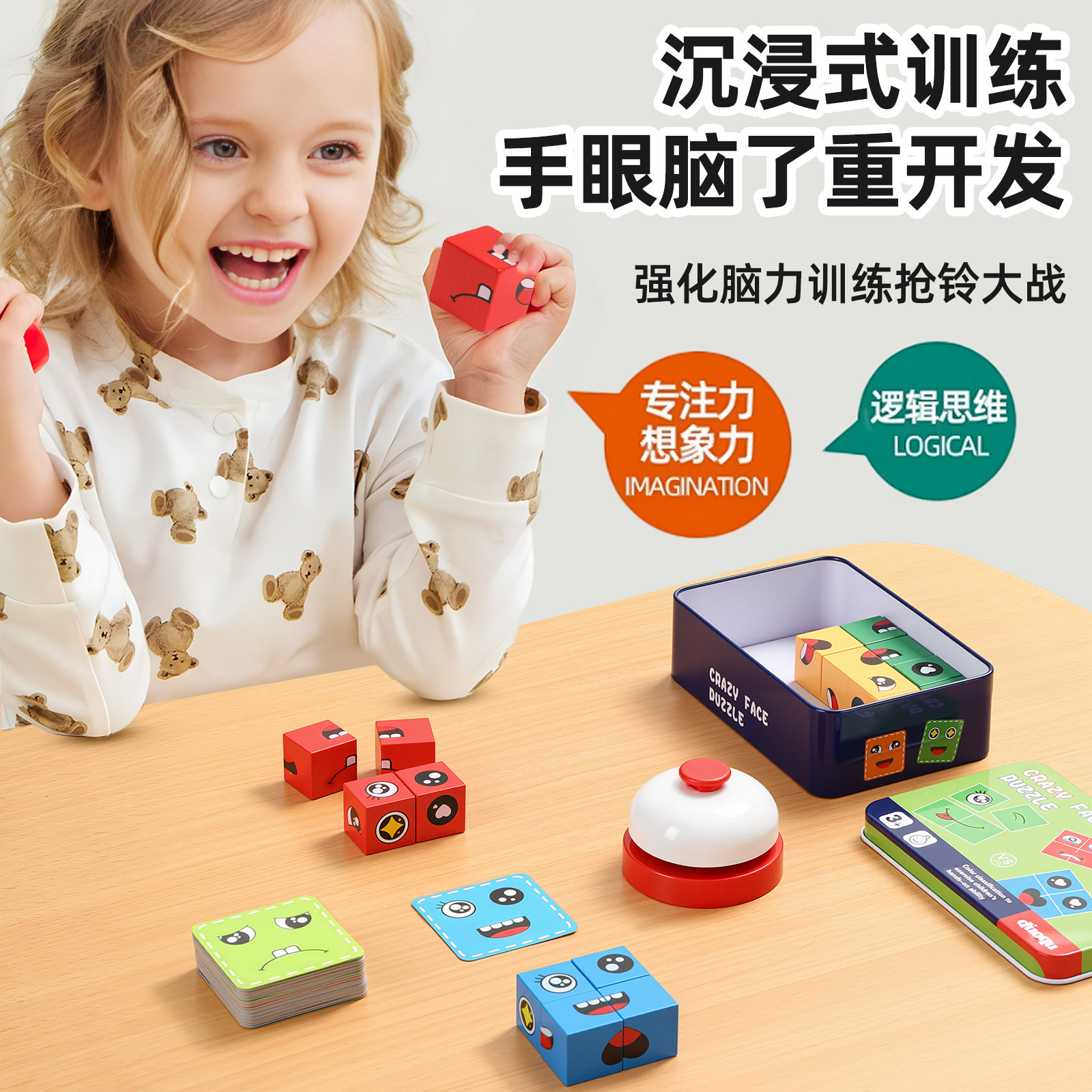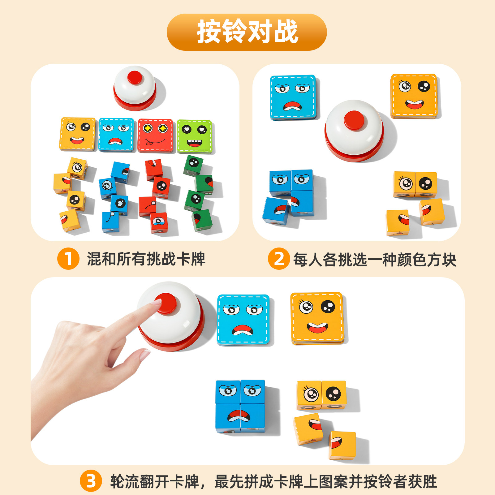📚 变脸魔方拼图铃铛你哭我笑拼图儿童笑脸表情积木亲子互动益智玩具
